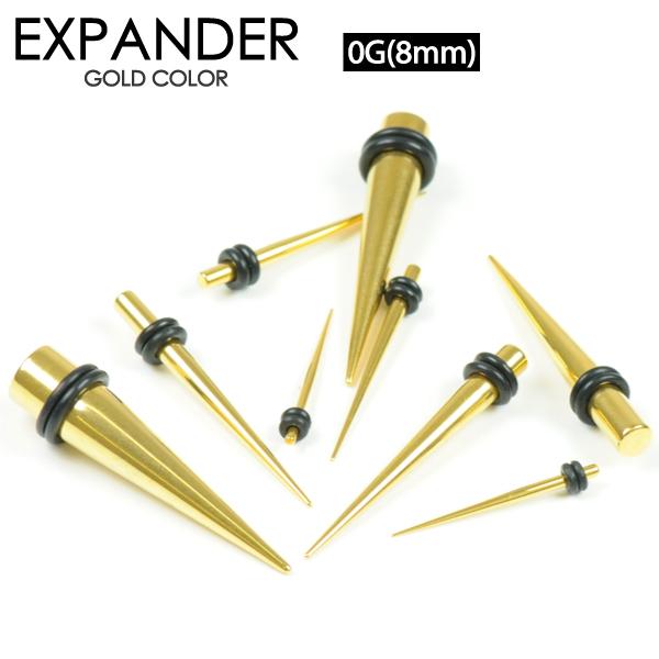 ボディピアス 0G (8mm) 拡張器 ゴールド エキスパンダー サージカルステンレス インサーションピン 0ゲージ (8ミリ) ホールアップ ┃ 收藏