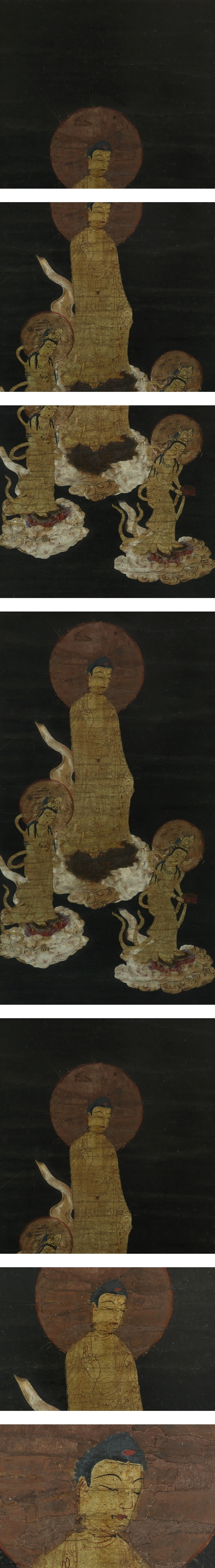 №2007170【肉筆】古仏画【三尊仏】◆紙本◆合箱◆改装済掛軸 | |