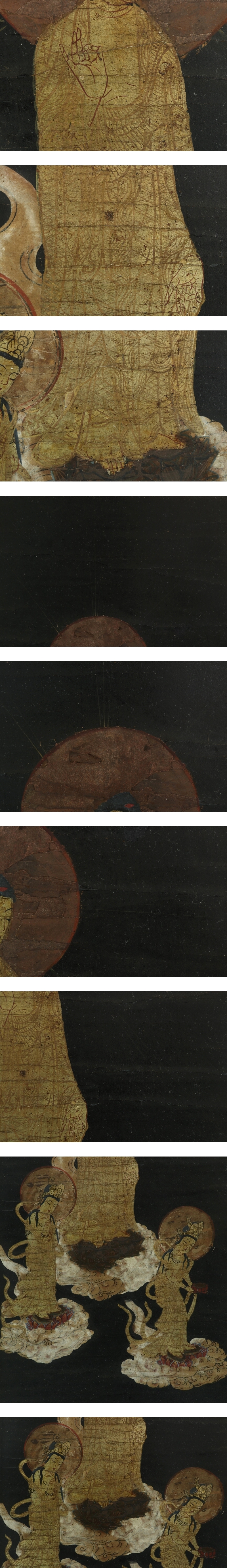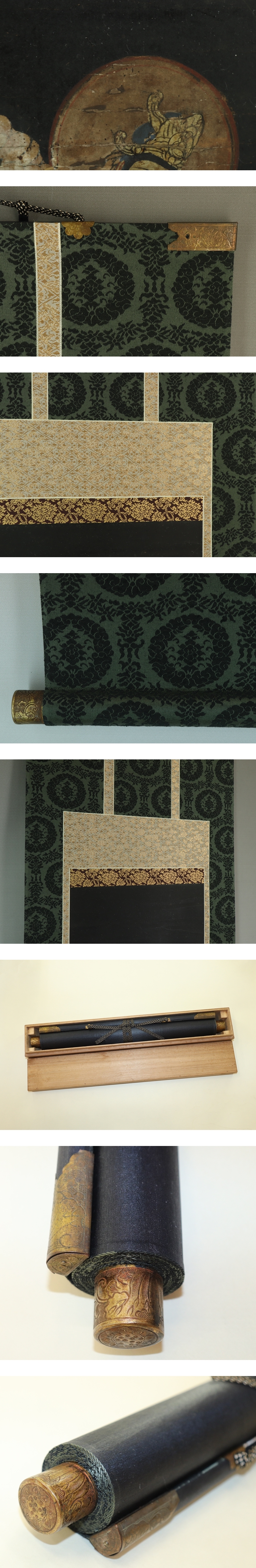 古仏画【三尊仏】 本紙は、染み痕、折れ痕があります。 表装は、良好です。 【サイズ】 作品 横約26.5cm×縦約59.5cm 表装 横約40.5cm×縦約124cm |