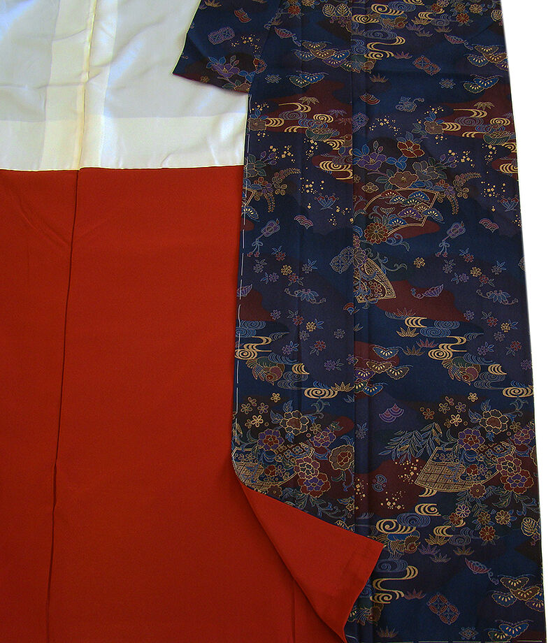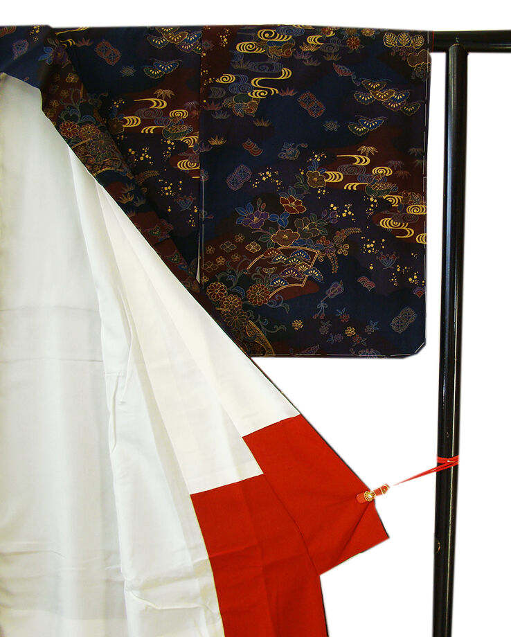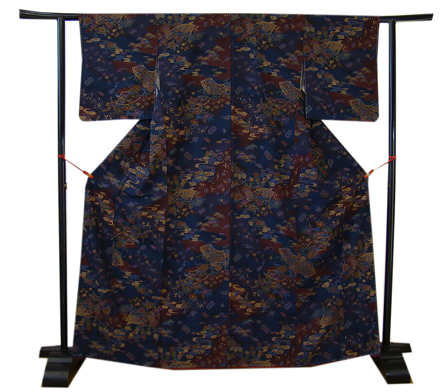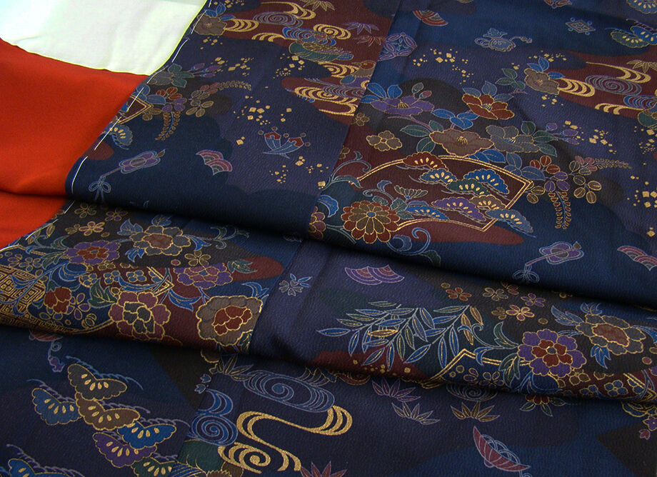 | 商品説明 | こちらのお品は袷ですので10月から5月までお召頂ければと思います。 しなやかな柔らかな手触りのさらりと着心地良いちりめん地の生地、 紺、青褐、紫鳶色等の染め分け地に流水、松や竹、花草、鳥、地紙文、宝尽し、七宝文等の染柄、 八掛は渋い朱赤色(正絹)、幅広い年代の方にお召頂けます。 |