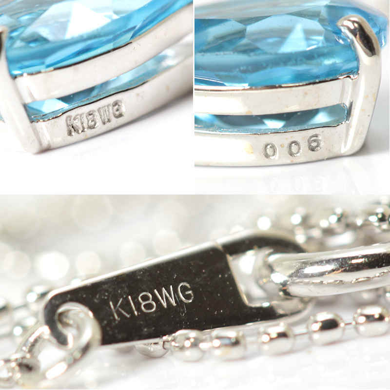 ブルートパーズ ネックレス K18WG ダイヤモンド 0.06ct 18金 ホワイトゴールド 約40cm 19648 收藏