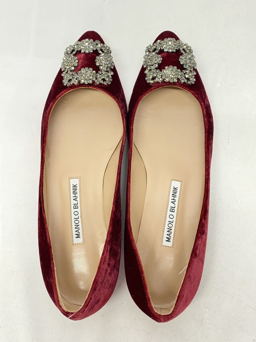 MANOLO BLAHNIK◆ビジュー/パンプス/37.5/BRD/ベロア/150-394// 收藏
