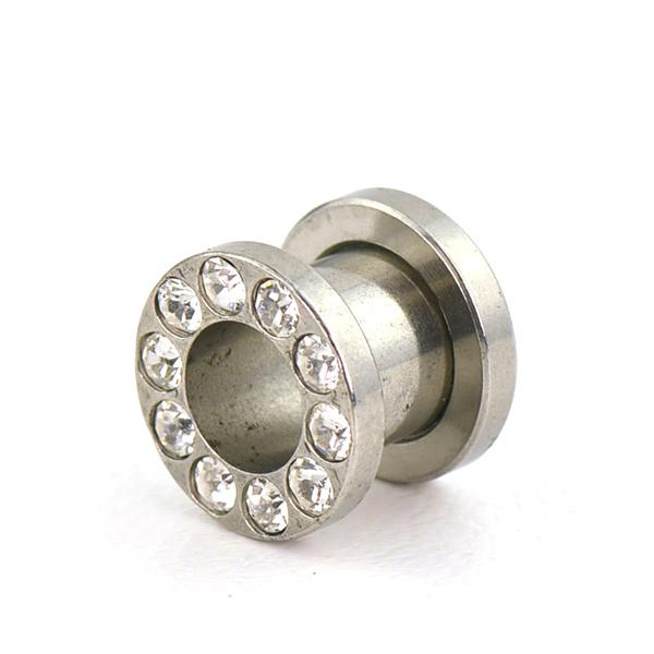 フレッシュ トンネル ラインストーン仕様 0G(8mm) サージカルステンレス316L ボディーピアス ジュエル付 ゴージャス ロブ 0ゲージ ┃ 收藏