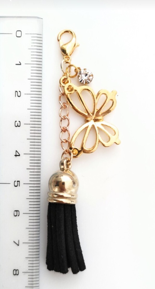 ハンドメイド キーホルダー バッグチャーム 蝶々 バタフライ タッセル ラインストーン ブラック 揺れる 可愛い 收藏