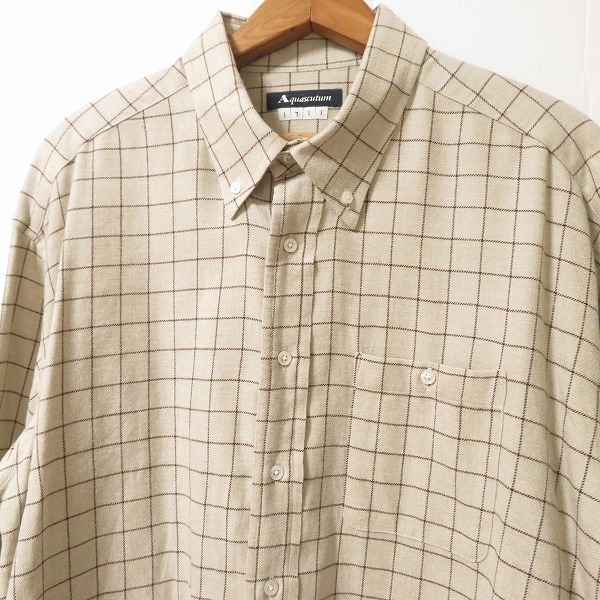 #anc アクアスキュータム Aquascutum 長袖シャツ ベージュ 茶 ボタンダウン チェック メンズ [936378] 收藏