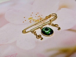 | 特徴 | 特徴:  ★音符2つと緑の国旗のような 少し変わっている柄の七宝を飾った ピンブローチです。 洋服のどこにでも簡単につけられます。  少し広がった所をカバーしたい洋服にも、 ピンブローチは助かります。 帽子のアクセントにも色々と楽しめます。  オシャレな貴方の ワンポイントアクセサリー! |