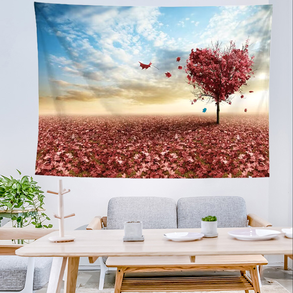 タペストリー 壁飾り 壁掛け装飾布 布ポスター 部屋飾り 背景布 インテリア カーテン 秋空とハートの木の絵柄 150x130cm 收藏