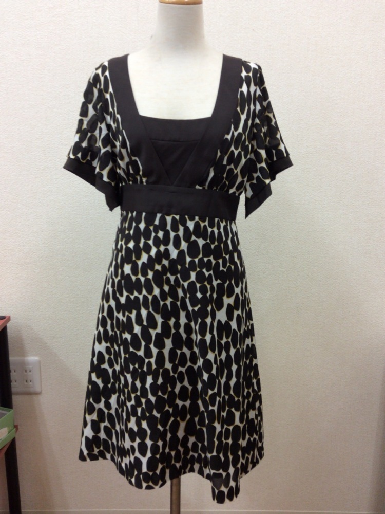 | 管理番号:99^118733 22OCTOBRE 半袖プルオーバーワンピース 白地に黒丸柄ふちはこげ茶 表示サイズ:38 実寸(参考)