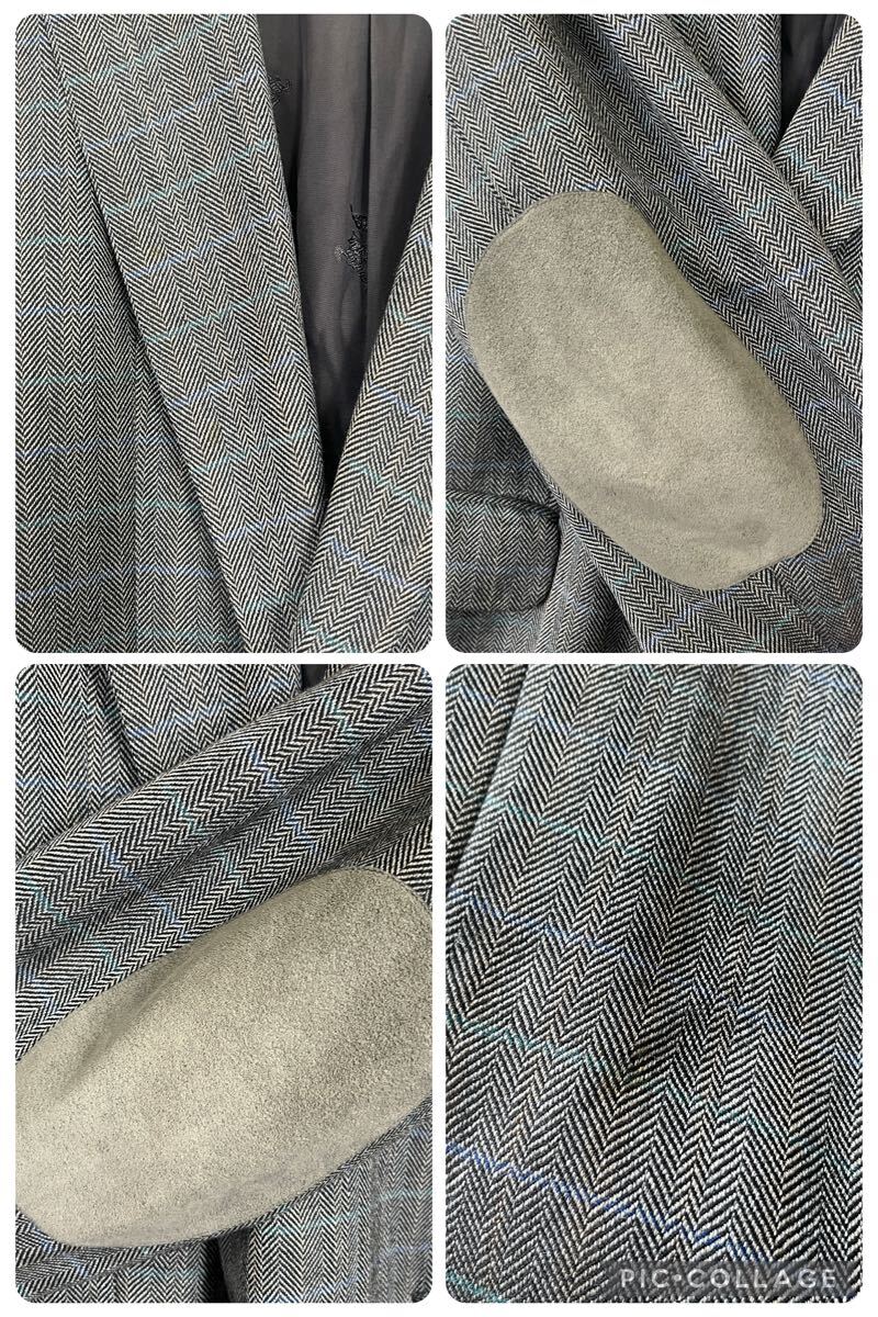 80s Burberrys バーバリー ツイードジャケット テーラードジャケット チェック柄 グレー 寒色系 シングル2ボタン エルボーパッチ vintage 收藏