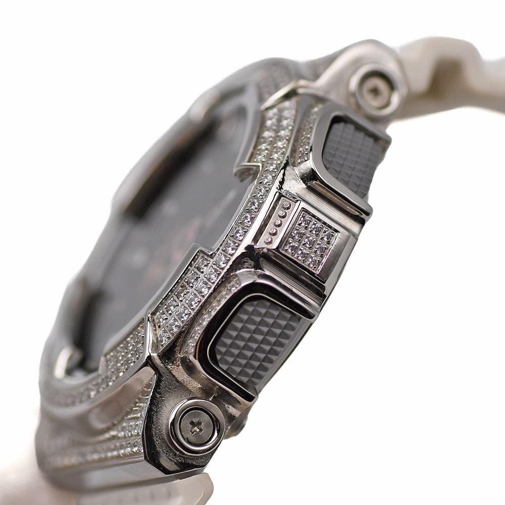 当店の専属時計修理業者にて電池交換済み。特筆すべき目立ったダメージはなく、コンディションは概ね良好です。 キュービックジルコニアを散りばめたラグジュアリー仕様のG-SHOCKが入荷しました。ストーン1粒1粒が爪留めセッティングのため、光の当たり具合により輝きが魅力的に変化します。アクセサリー感覚で身に付けることができるセンス溢れるアイテムとなっております。非常に貴重なアイテムで出回りの少ないアイテムですので、この機会にご検討ください。 |