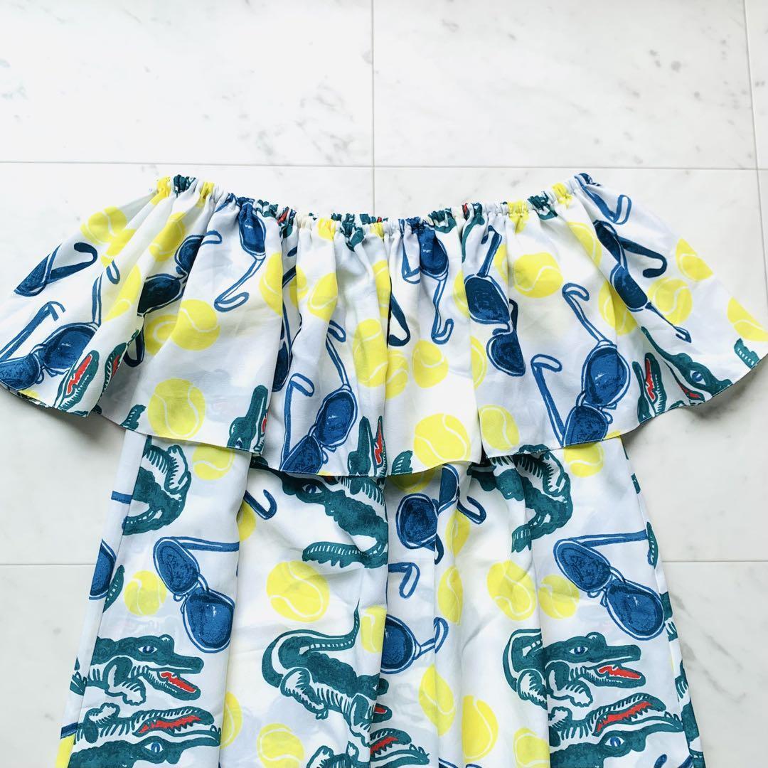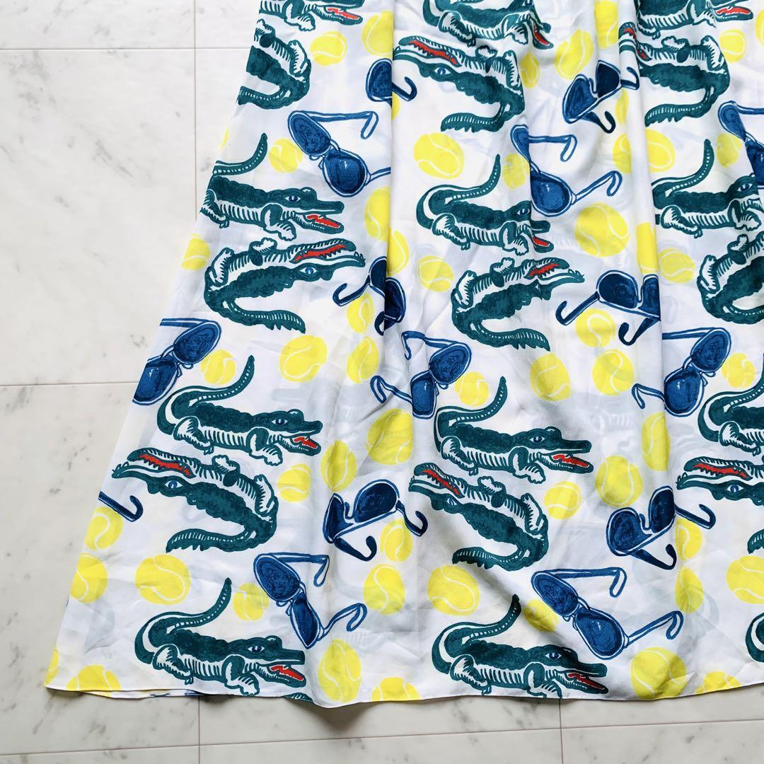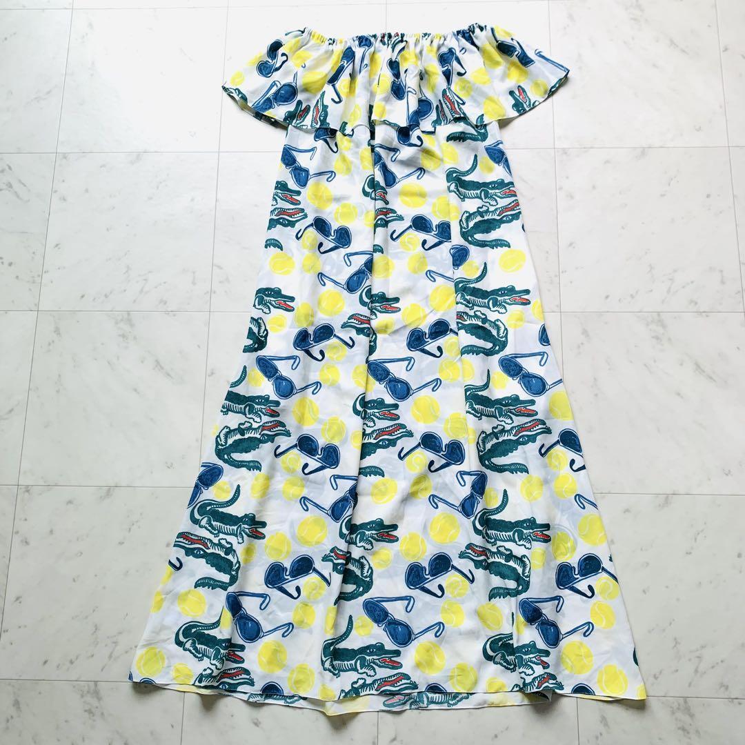 良品 希少 LACOSTE ラコステ ロングワンピース オフショルダー 総柄 ワニ テニスボール サングラス レディース ホワイト グリーン 白 緑 38 收藏