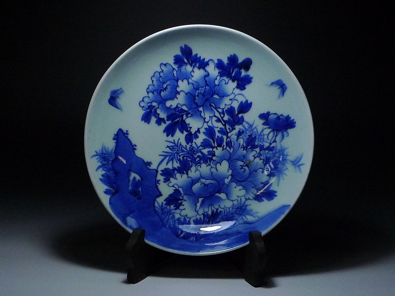 10KK90★鍋島染付 大皿/盛皿 青花 染付 牡丹/蝶 陶磁器 太化年製 直径27.5㎝ 高さ6.5㎝ 食器 骨董品/美術品/古美術/時代物 收藏