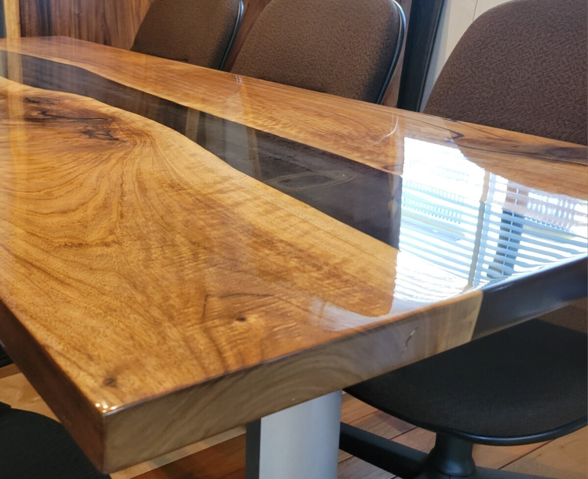 新品!会議室用、大型テーブル6人掛け以上レジンテーブルウォールナット材 36㎜厚×奥行800×横幅(長さ)2000㎜ 天板のみ、脚は要ご相談 收藏