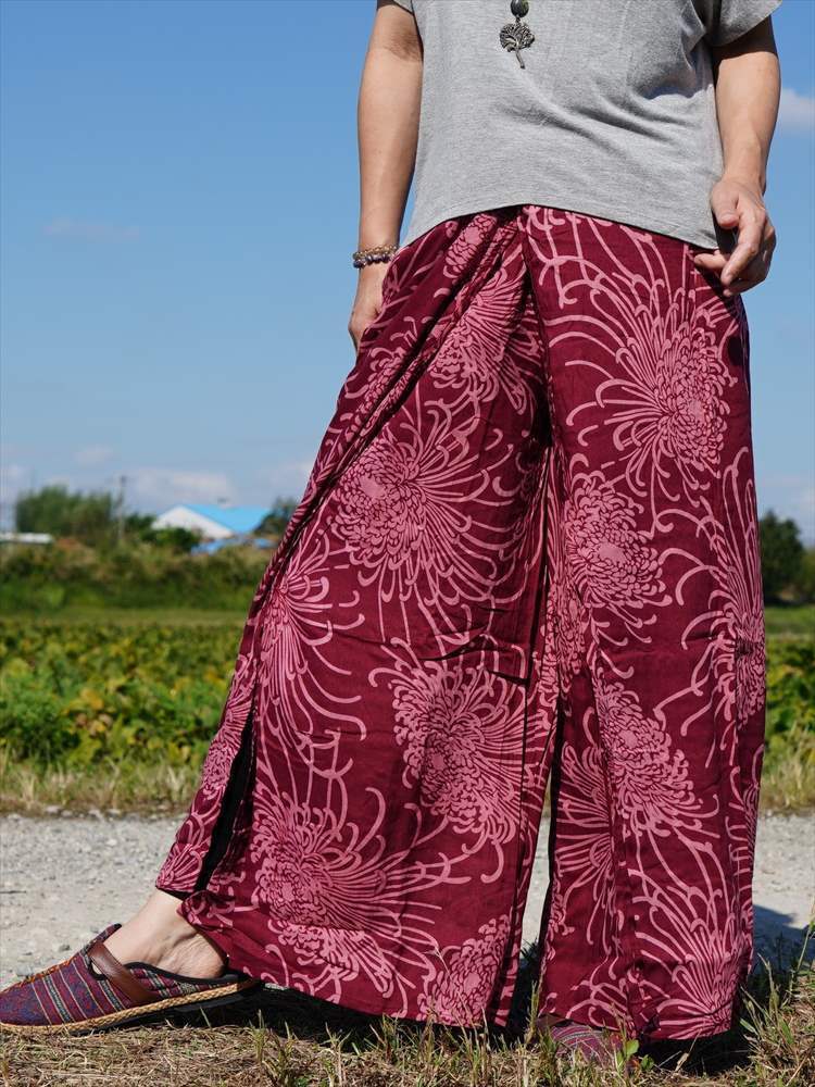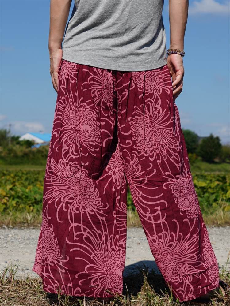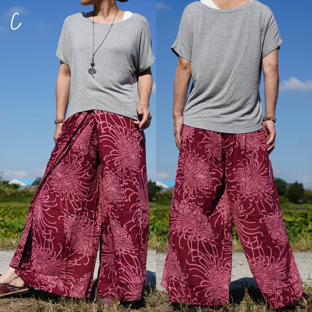 ★エスニック ラップパンツ 和柄 ボタニカル★送料込新品C★アジアン 巻きパンツ ワイドパンツ ヨガ ユニセックス ルームウエア 收藏