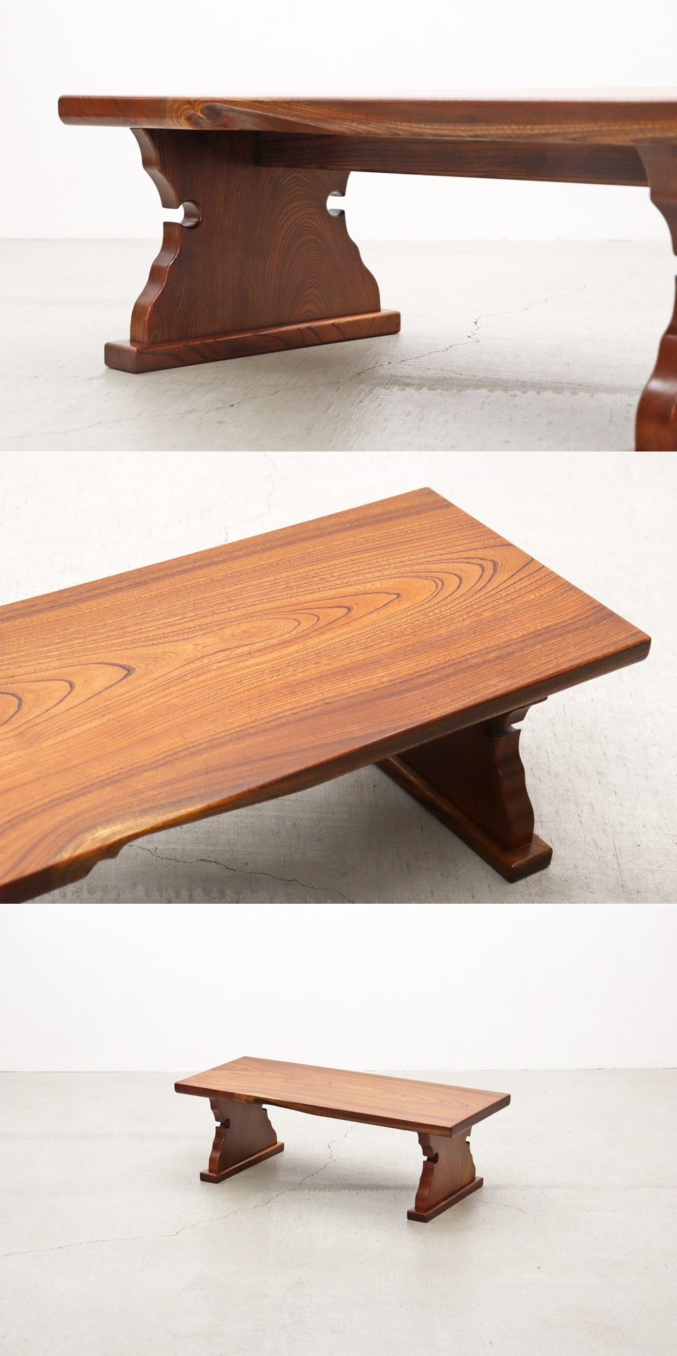 ◆レトロ 無垢材 文机 ローテーブル レトロ ちゃぶ台 座卓 台/ヴィンテージアンティーク昭和オールド花台展示台古民家/PIK11095◆ 收藏