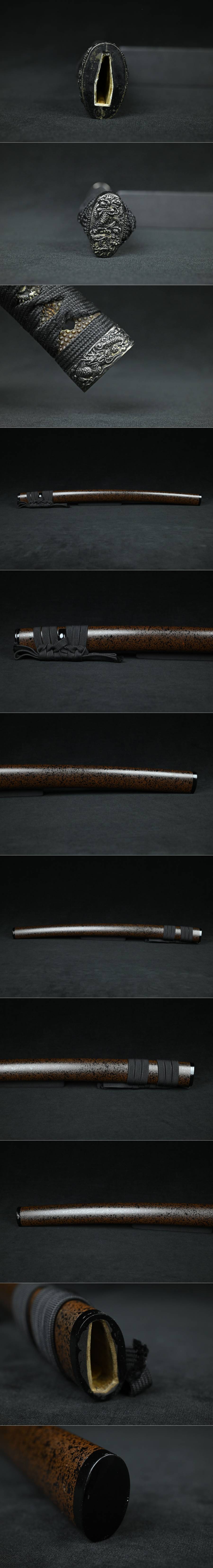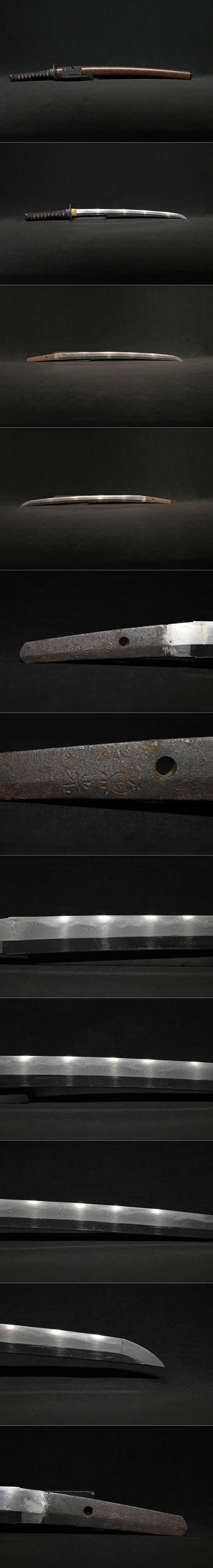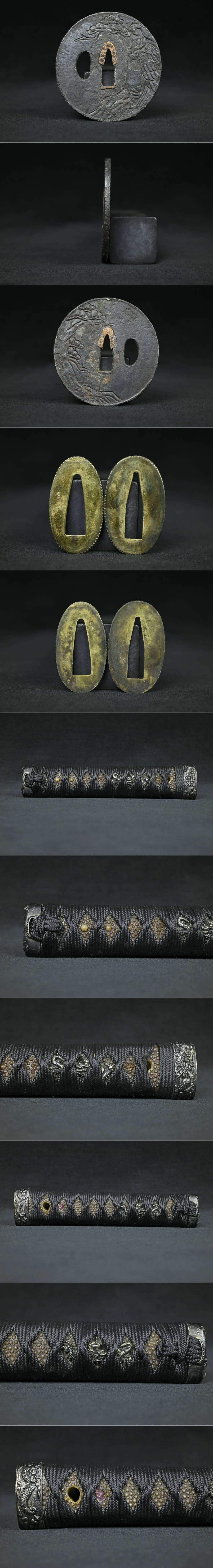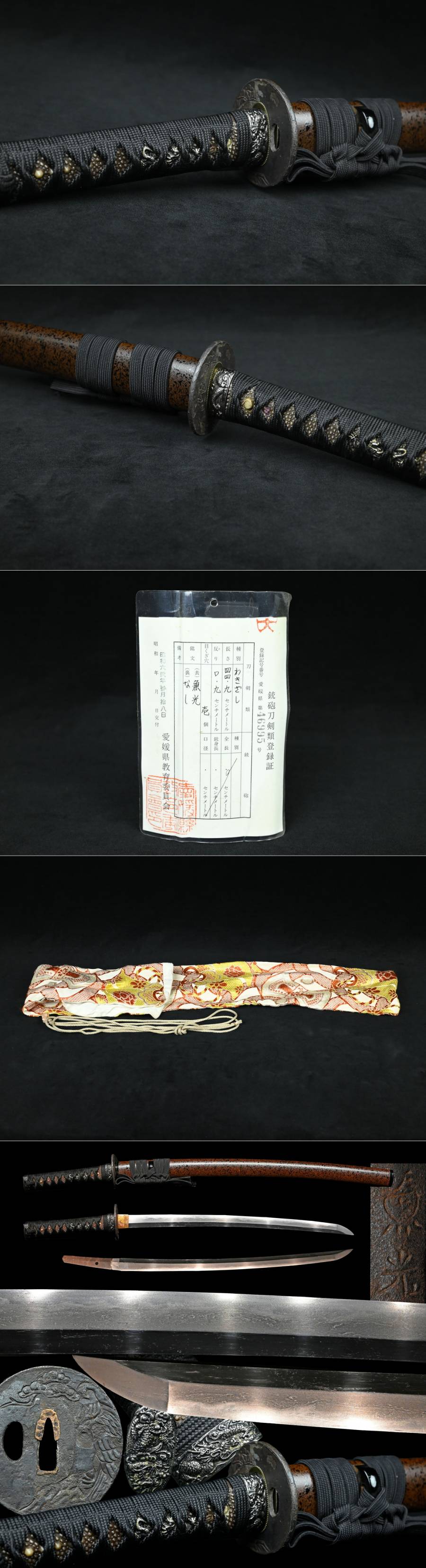 【昊】兼光 銘 湾れ刃 板目肌 刃渡り44.9cm 松図鍔 龍図目貫龍図縁頭 脇差 刀剣武具[NS32Ii] 收藏