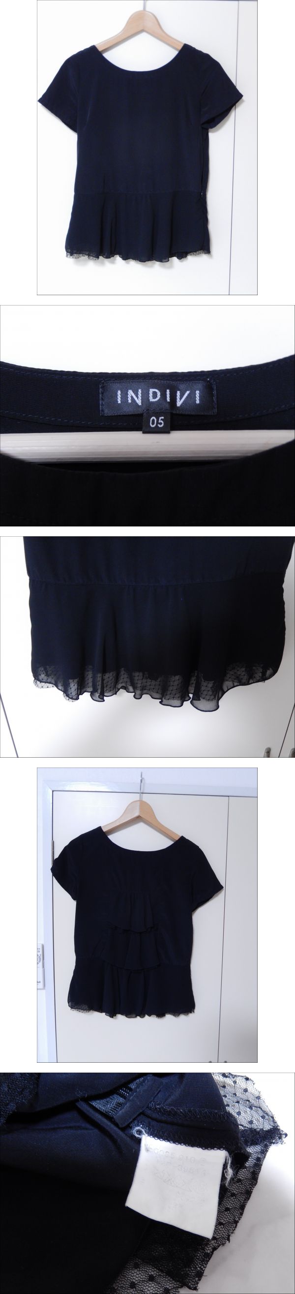 【管KI0902】1500円~ INDIVI インディヴィ レディース 半袖 カットソー トップス 黒 サイズ 05 收藏