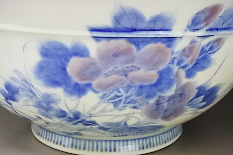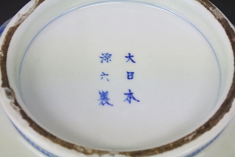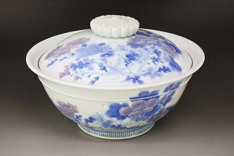 【逸品】富永源六 釉下彩芙蓉菊図 蓋物 明治期 源六窯 万博出品作 西国工芸博覧会出品 スープボール 佐賀 源六窯 骨董 アンティーク 時代物 收藏