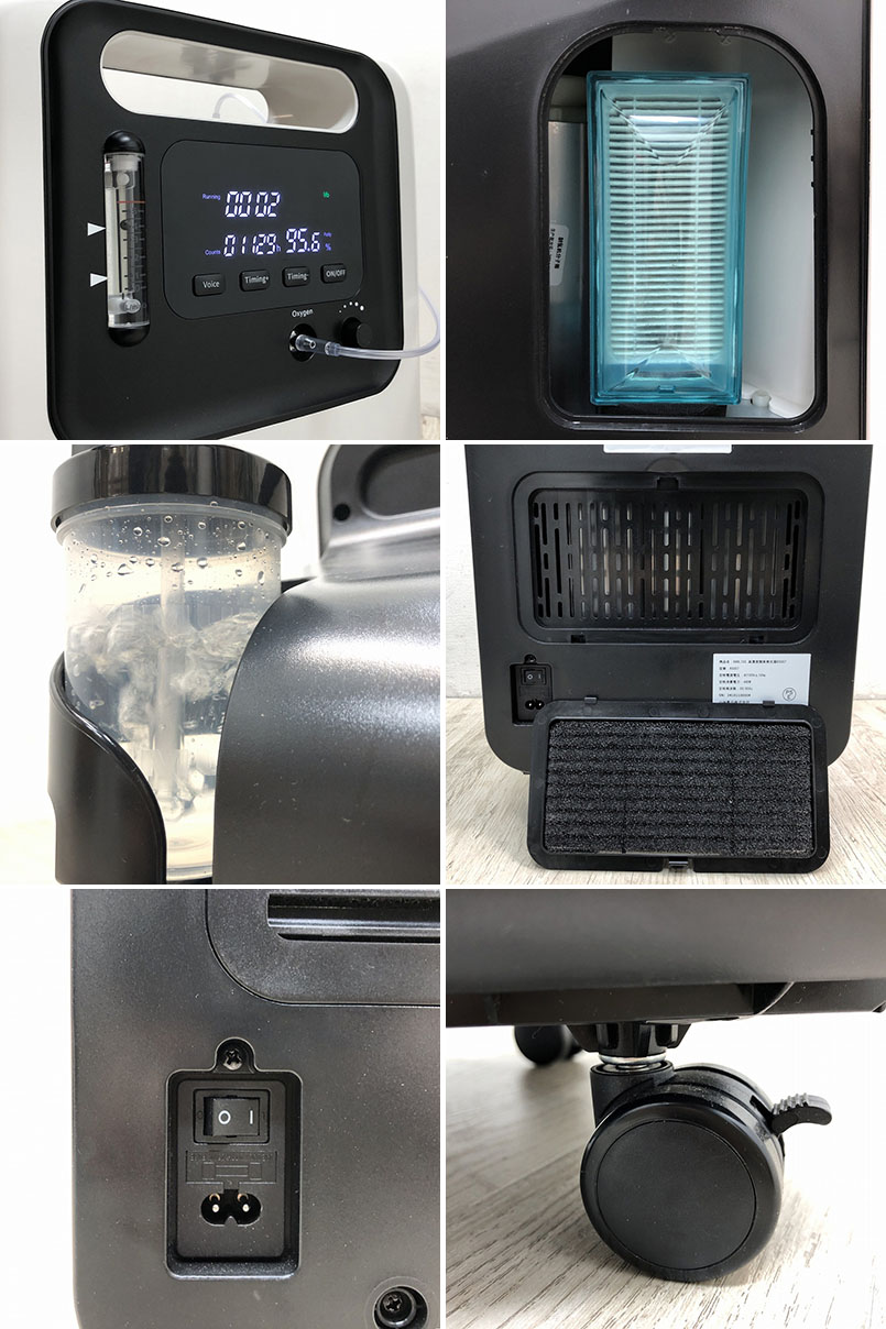 ■外形寸法 幅350mm×奥行き330mm×高さ660mm ■重量 約21kg ■付属品 取扱説明書、電源コード、リモコン、交換用フィルター(スポンジ)、交換用フィルター(カセット)、 交換用ヒューズ×2、加湿ボトル、酸素チューブ、鼻カニューレ×2(1個は未開封、1個は使用済み)、 酸素マスク(未開封)、2人用分配チューブ、ネブライザーカップ(未開封)、 ネブライザー用チューブ(未開封)、ネブライザー用吸入マスク(未開封)、ネブライザー用吸入パイプ(未開封)