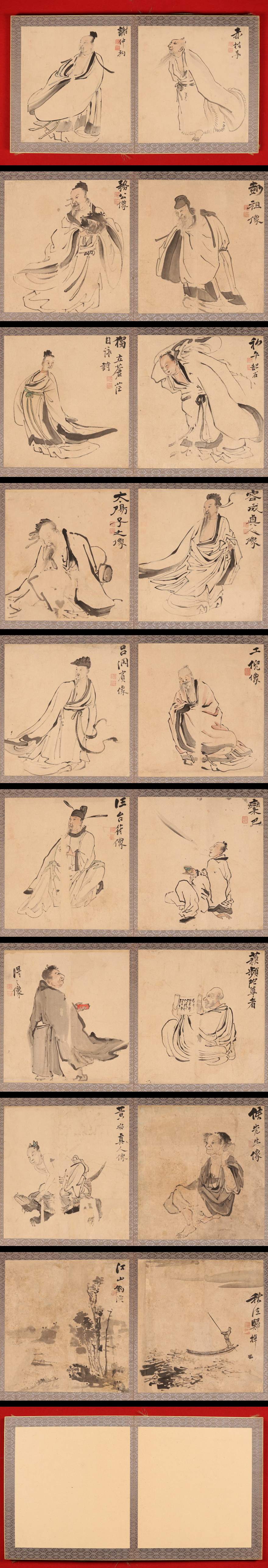【模写】【伝来】am7423〈谷文晁〉画帖 中国著名仙人 人物と風景図 赤松子 呂洞賓 文人画大家 渡辺玄対・清人張秋谷師事 東京の人 收藏
