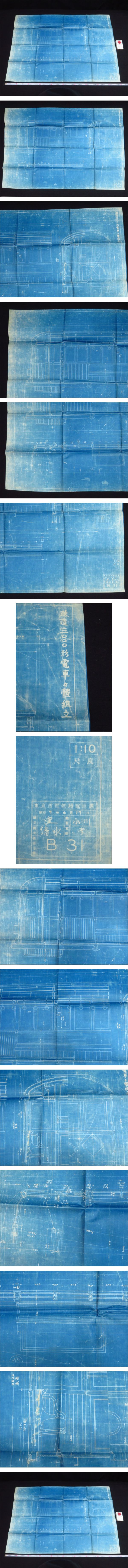 戦前 鉄道 図面(6)【東京市電 B31 / 改造3000形電車車体組立図】大型図 昭和7年 東京市電気局 路面電車 車両 資料 青焼き 車輌 鉄道省 国鉄 收藏