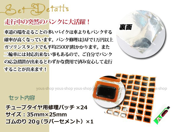 激安 新品 チューブタイヤ用 修理パッチ Mサイズ 48枚入り パンク 修理 ゴムパッチ タイヤパッチ バイク オートバイ シール テープ 收藏