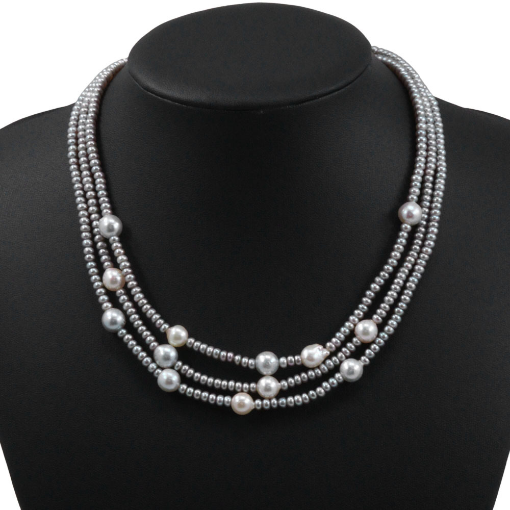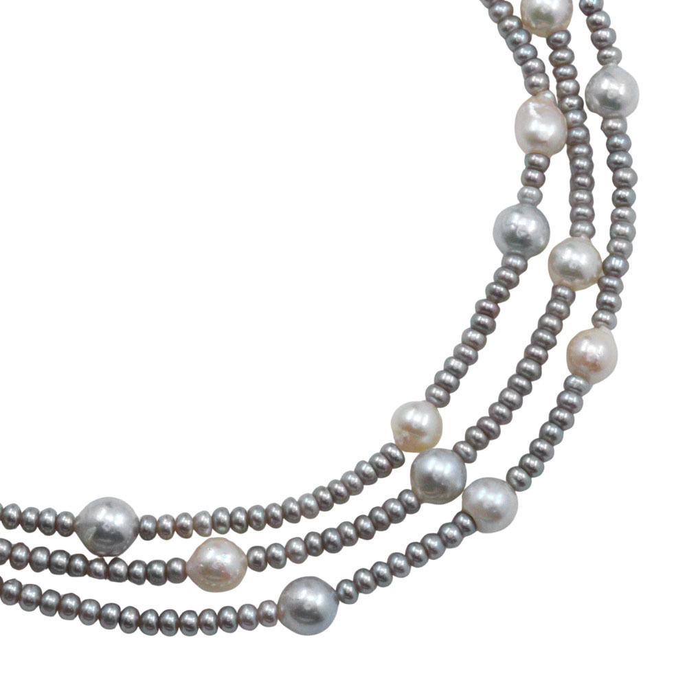 バロック ベビーパール 3連 ネックレス シルバー×真珠 約33.1g レディース【M180325006】中古 收藏