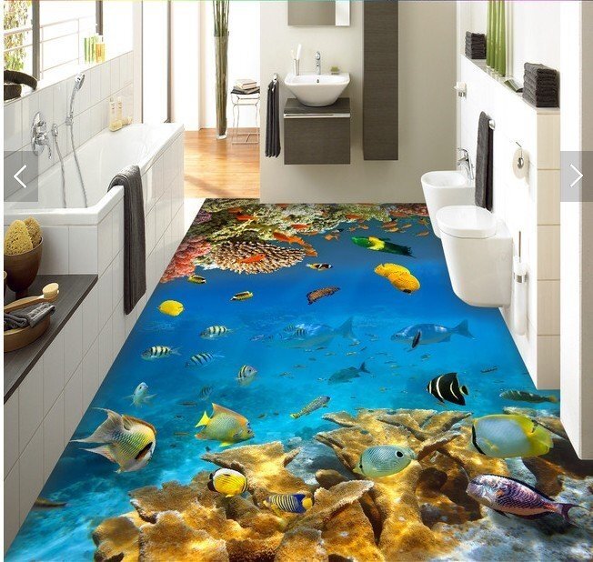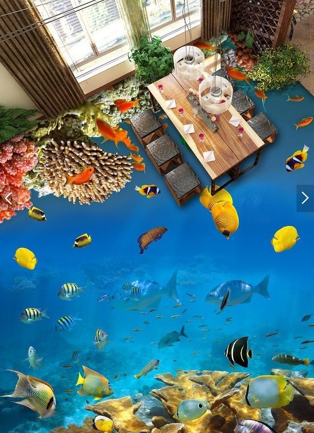 C634 巨大 3D フロアマット 2m*2m* 海 水族館 風景 景色 リフォーム リメイク 防音 断熱 滑り止めシート 床 壁 天井 はがせるシール
