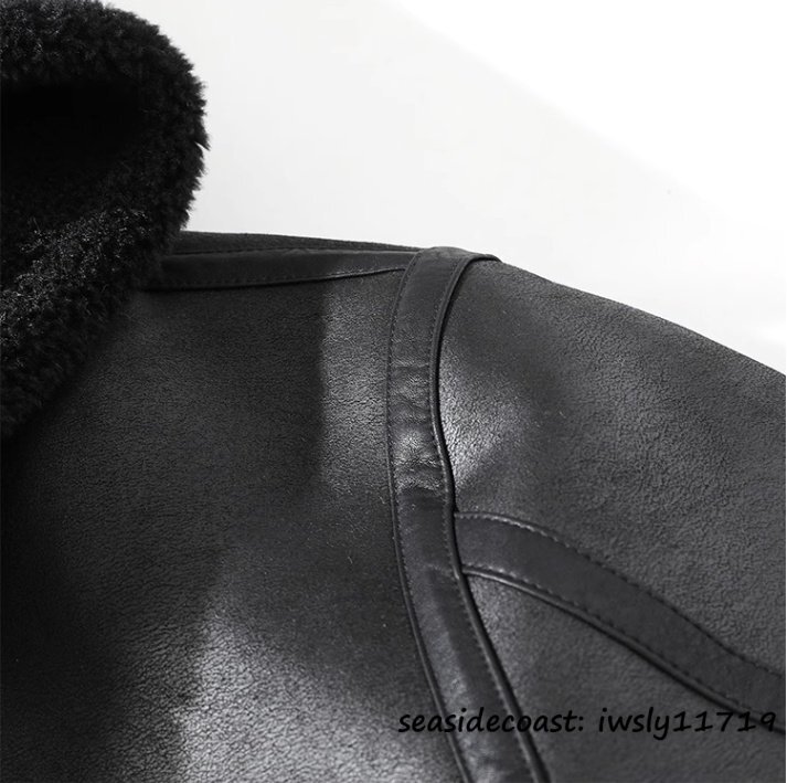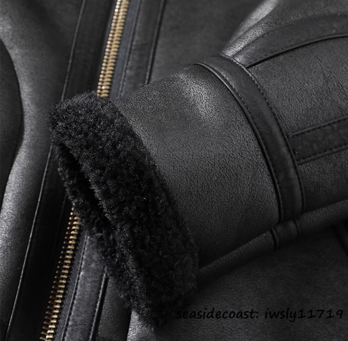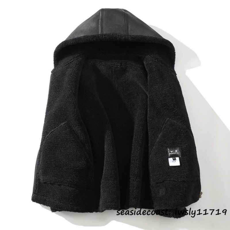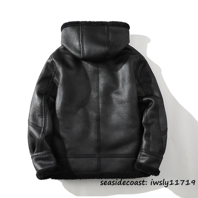 最上級*ライダース フード付き ムートンコート メンズ レザージャケット ブルゾン ジャンバー 防寒 厚手 フライトジャケット ブラック 2XL 收藏