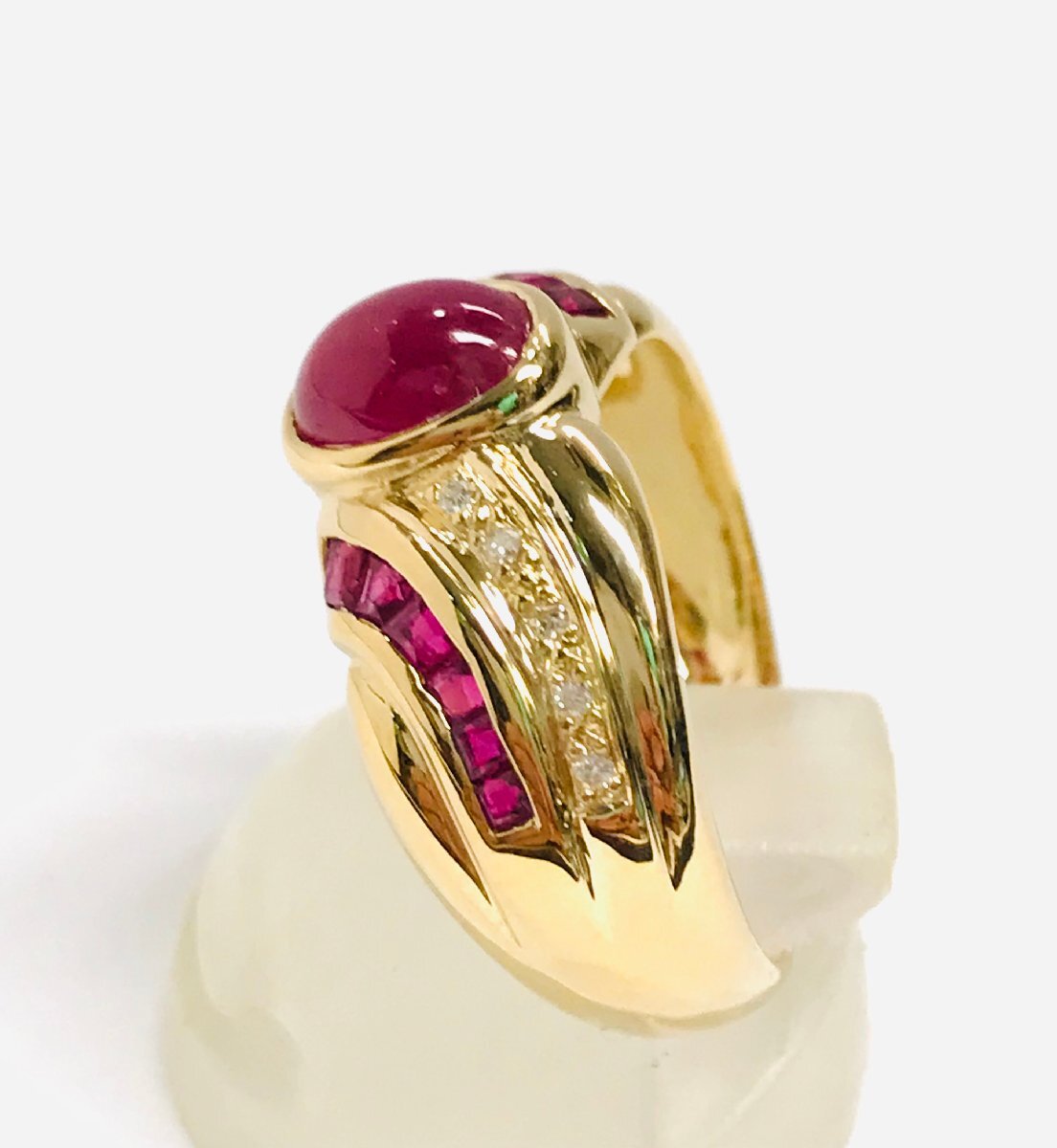 18K ゴールド ルビー ダイヤモンド デザインリング カボションカット 12号 サイズ:12号 qoj.YV602 收藏
