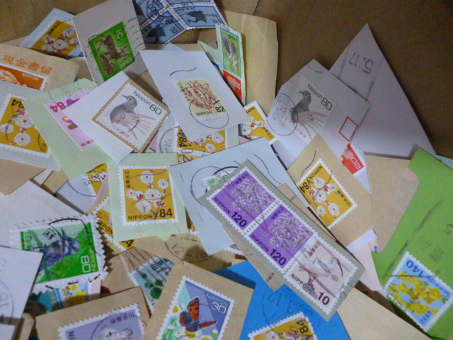 使用済み 普通 日本切手 紙付き キロボックス 4kg (風袋込み) 大量 使用済み紙付普通日本切手 昭和レトロ 收藏