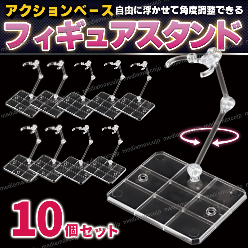 アクションベース フィギュア スタンド ディスプレイ 台座 可動 透明 展示 クリア 10個組 ガンプラ 食玩 模型 プラモデル 1/144 180度可動 收藏