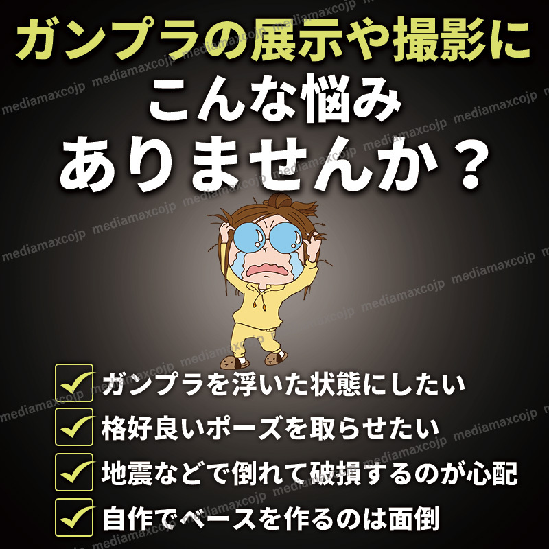 | 1/144 可動台座 透明色/お得な10個セット! 【角度が調節可能】 可動部ははめ込み式留めになっており自由に角度を 調節することが出来お好きなポーズが作れます。 また、3つの間接部により自由度の高いディスプレイが可能で、 ガンプラ以外にも人型のフィギュアにも対応しています 【大切なコレクションを店頭から保護】 ガンプラやフィギュアなどを作成したあと、そのまま置くと 倒れてしまう恐れがあります。フィギュアスタンドで配置すれば ガンプラやフィギュアが保護できるだけでなく、すっきりとして 見栄えがよくなります。人型のフィギュアにも対応しています 【組み立てやすさ】 工具いらずのパーツ立てとセットになっているので、フィギアスタンド を使うことによりガンプラの組み立てや塗装、仕上げのコーティング までの作業がスムーズに行えます。 戦闘シーンやアクションシーンを完全に再現できます 【セットで置き放題】 10個セットで複数のガンプラやフィギュアに対応。 キャラクタースタンドのクリップがC字型になっており、 胴体を挟んで固定。立つ、S字型に立つ、飛ぶ、ポーズなど アニメ漫画の名場面を再現したアクションや、 透明タイプなので人物やの見た目には影響しません ●商品詳細 ディスプレイスタンド×10個 カラー:透明色 台座サイズ:約9.5×7.5cm。 重量:約80g | ||