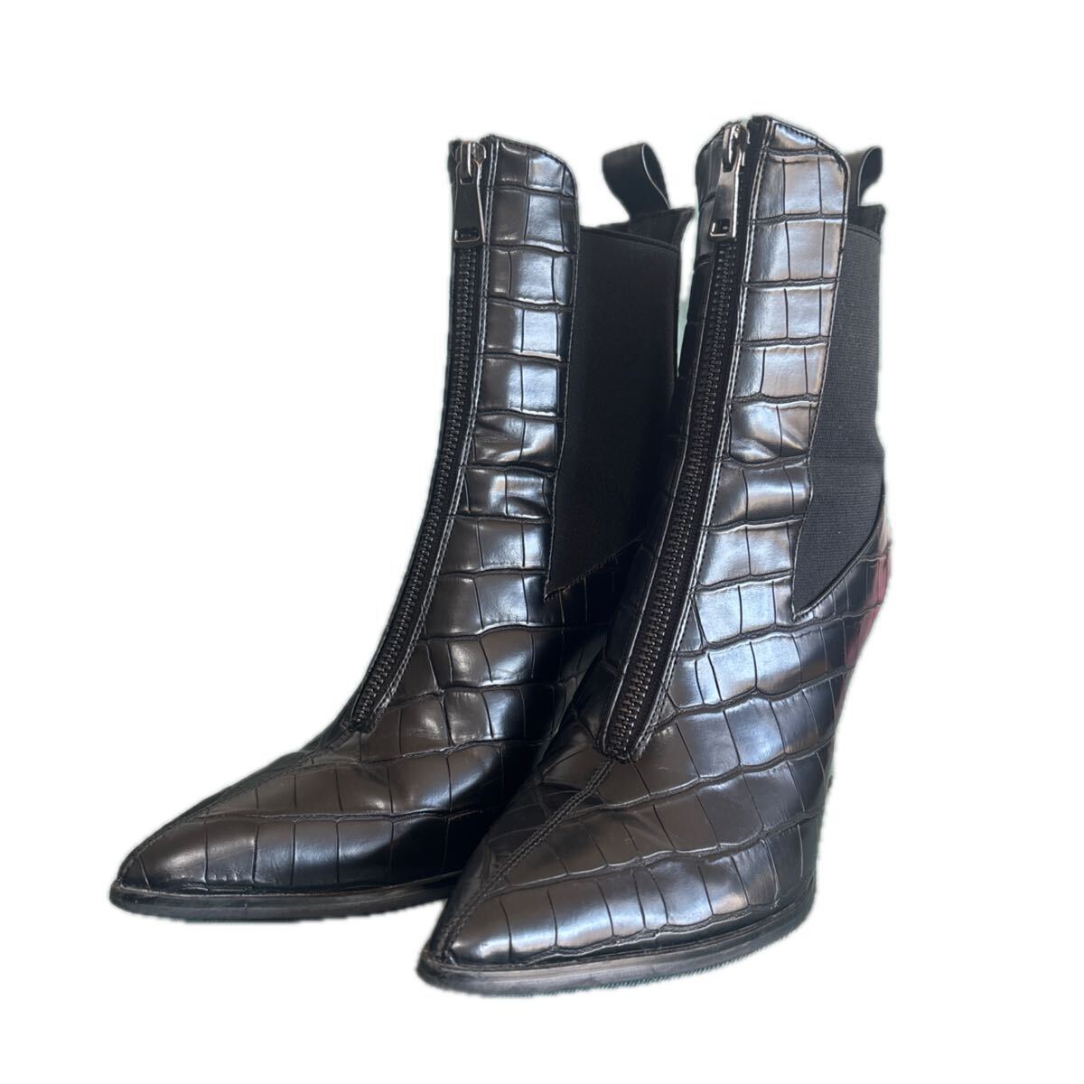 サマンサベガ クロコ型押し ショートブーツ ブラック ポインテッドトゥ チャンキーヒール レディース レザー 收藏