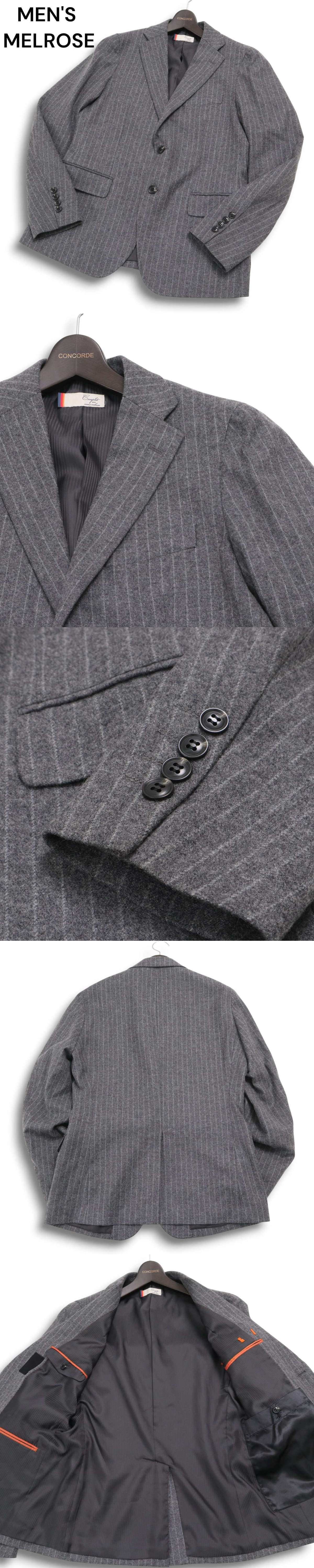 Complet par MENS MELROSE メンズメルローズ 秋冬 カシミヤ混★ ウール ストライプ テーラード ジャケット Sz.4 メンズ 灰 收藏