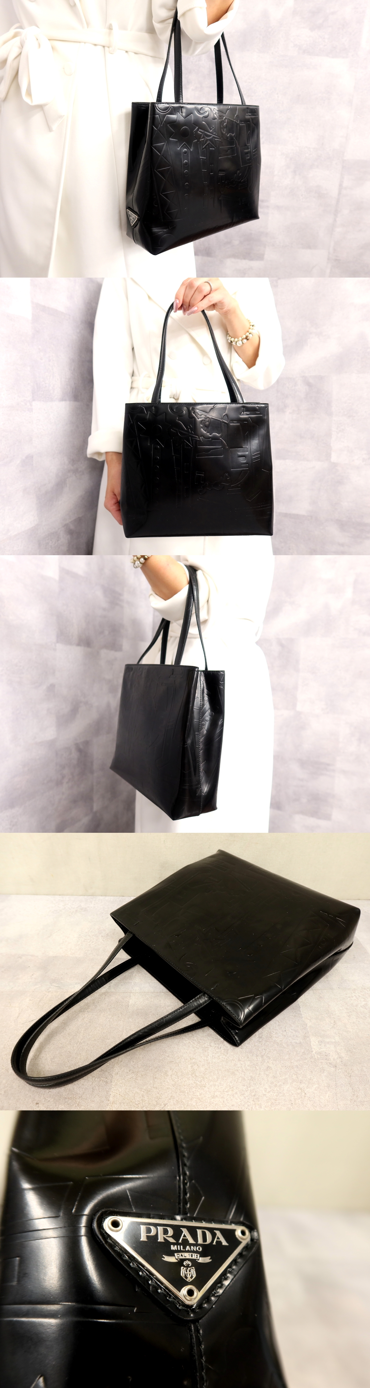 ●超美品●PRADA プラダ●三角ロゴプレート●エナメル パテント レザー 本革●トート バッグ●黒●腕掛け●イタリア製●かばん●Js61918 收藏
