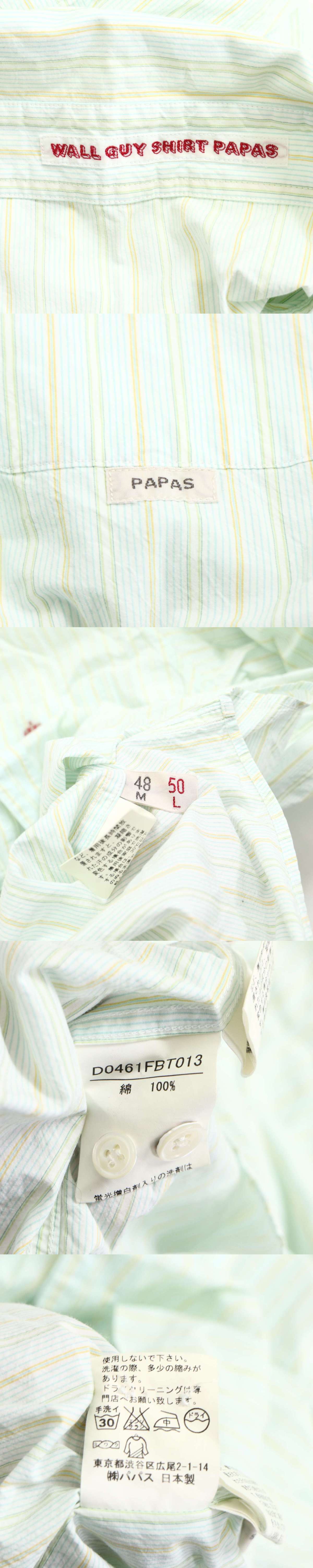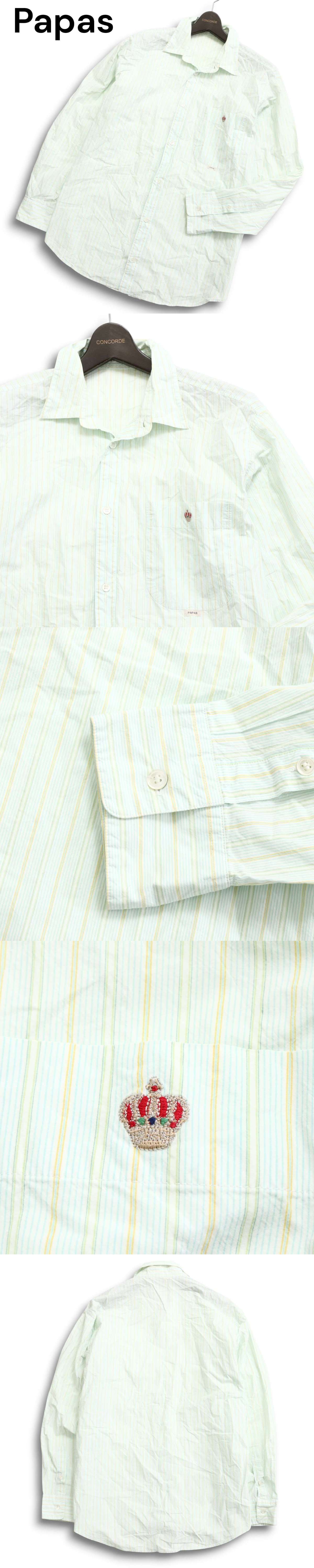 Papas パパス 通年 クラウン刺繍★ 長袖 ストライプ シャツ Sz.L メンズ 日本製 收藏