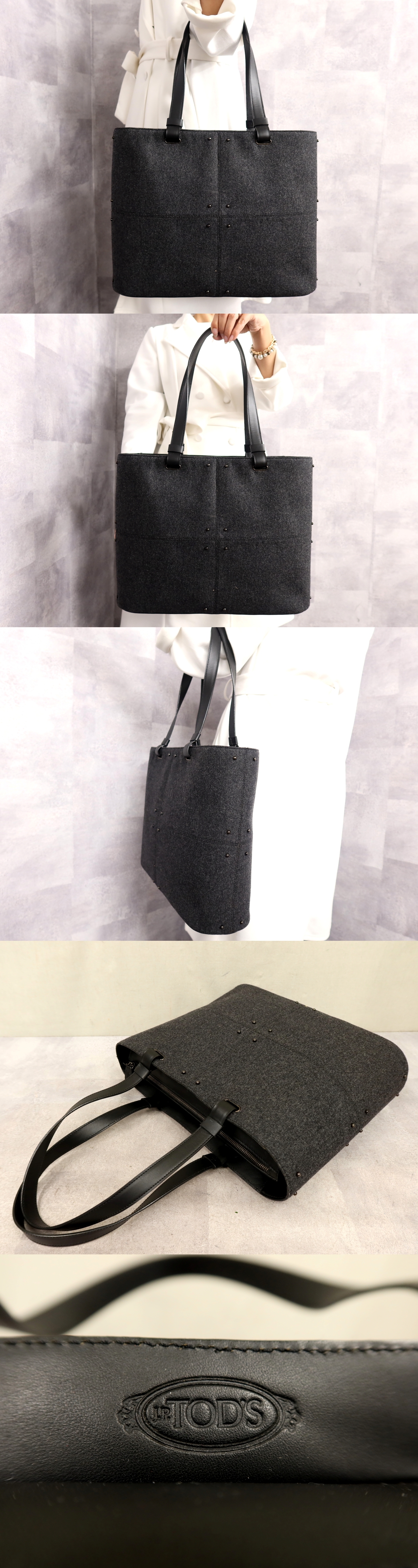 ●超美品●TODS トッズ●ロゴ型押し●ウール カーフ レザー 本革●トート バッグ●黒 ダークグレー●腕掛け●A4 収納 かばん●Js62332 收藏