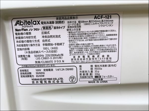 中古 アビテラックス Abitelax ノンフロン電気冷凍庫 前開き ACF-121 100L 2022年製 冷凍庫 家庭用 引取歓迎 茨城県常陸大宮 1118こ1 H 220 收藏