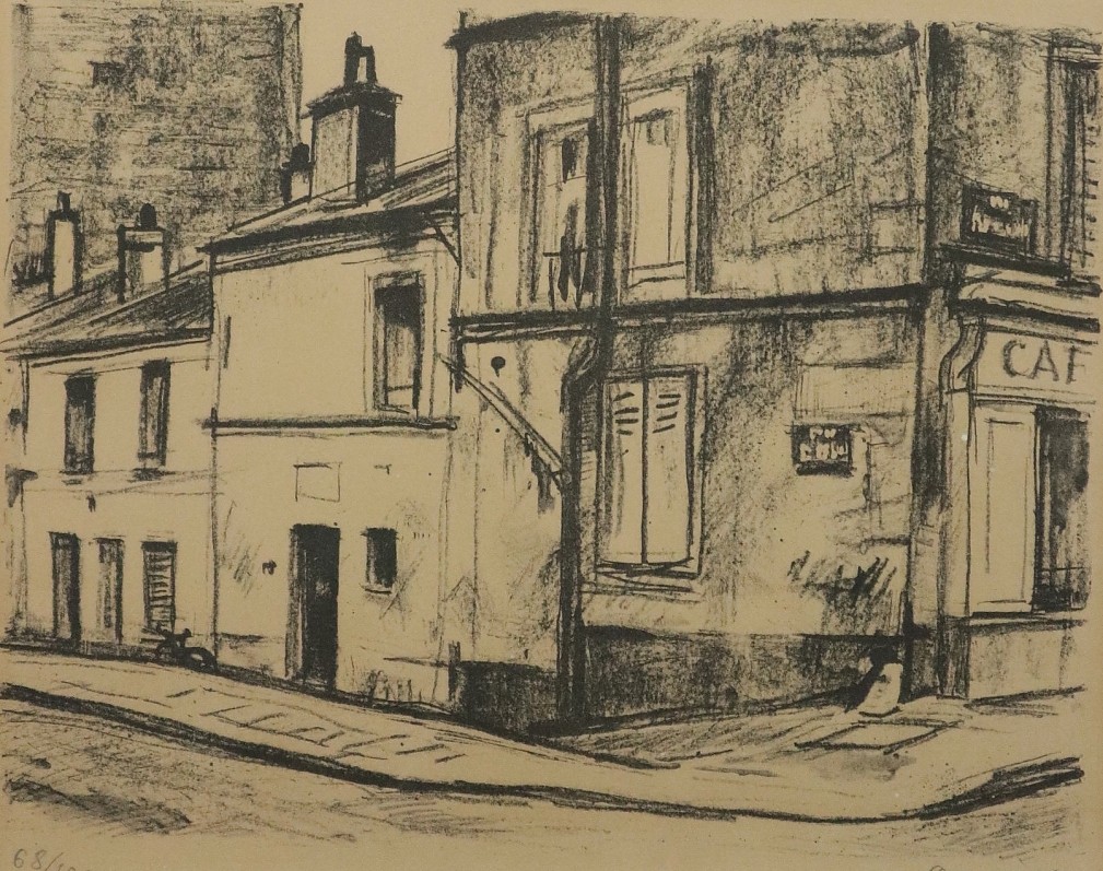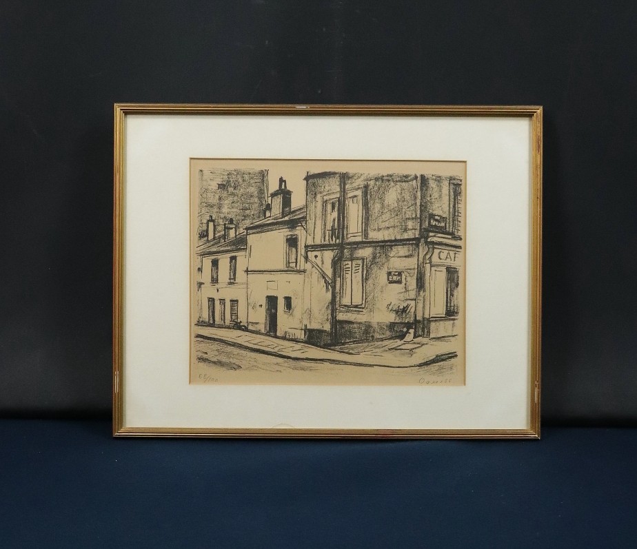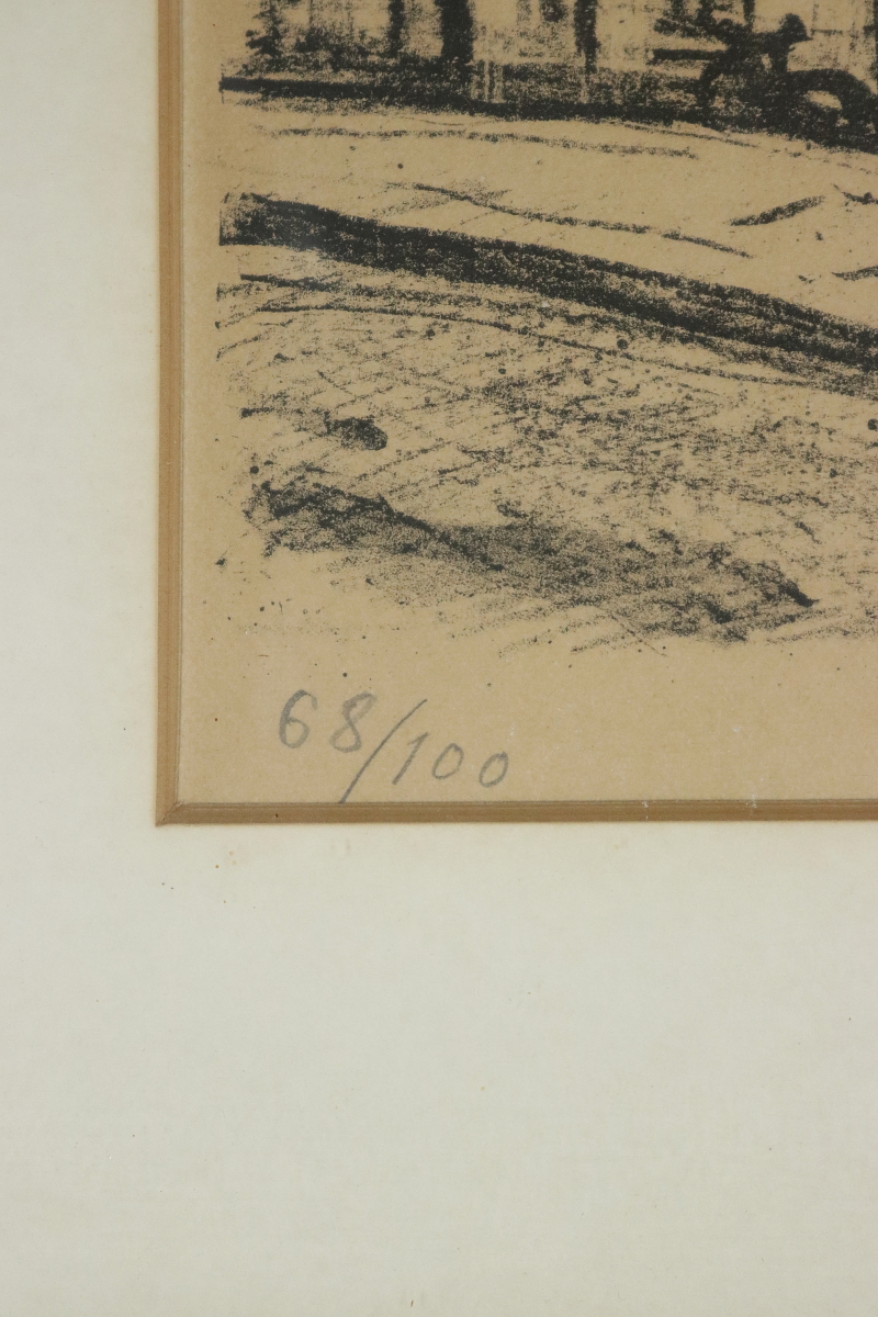 11694■【真作】荻須高徳 『テール・ヌーヴ通り「パリの顔」』 リトグラフ 限定100部 直筆サイン 洋画家 佐伯祐三師事 愛知県 額装 收藏