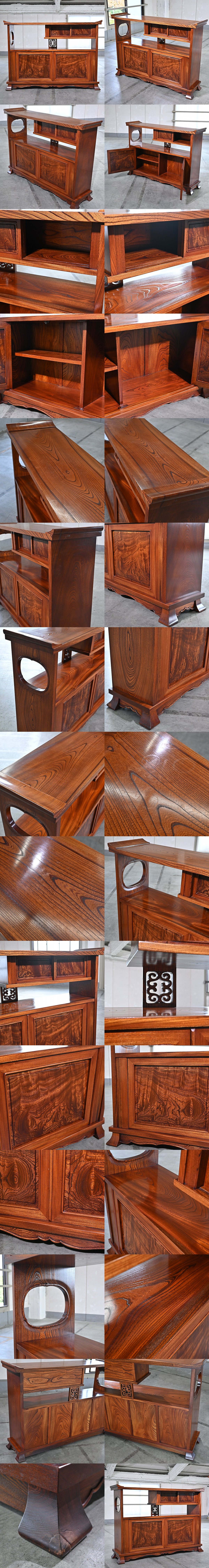 最高級 指物工芸家具 200万 飾り棚 欅無垢材 透かし彫り 箪笥 収納 戸 サイドボード キャビネット ディスプレイ_松本民芸 北海道 收藏
