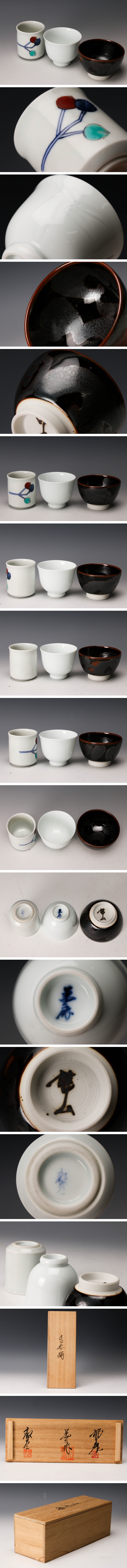 【佳香】人間国宝 井上萬二 青木龍山 辻毅彦 寄せぐい呑 三客セット 共箱 本物保証 收藏