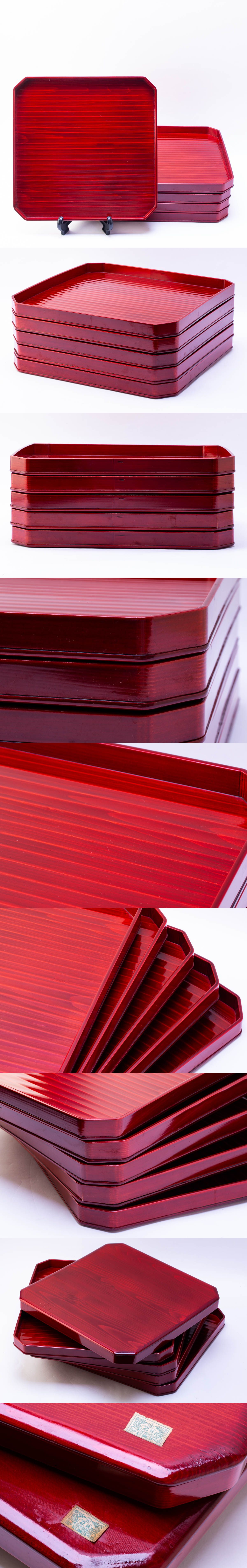 福田製 飛騨高山 紅春慶塗 尺五分隅切鉋同寄席膳 5客 になります。