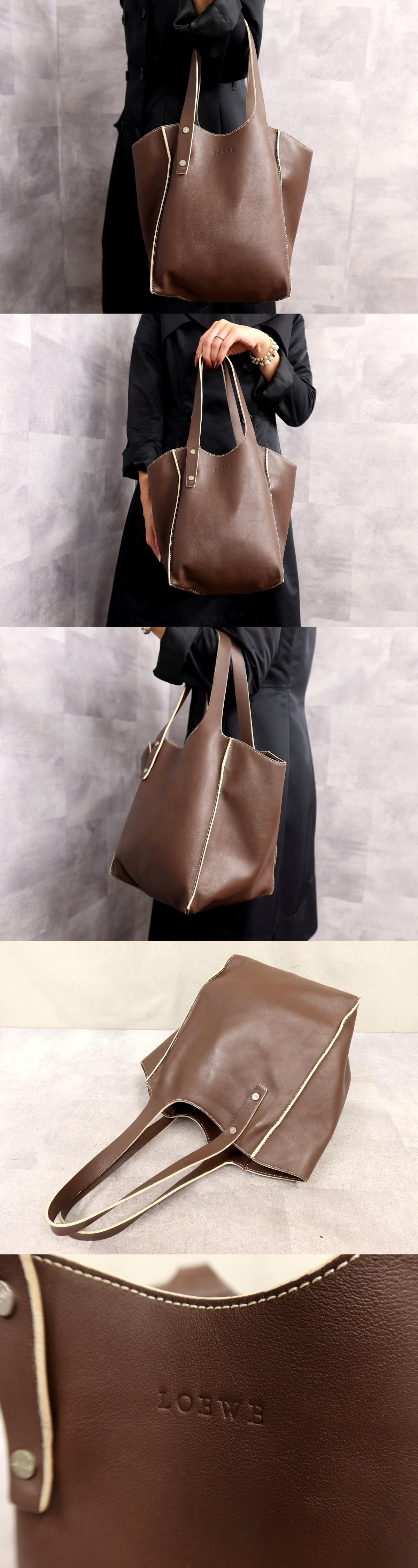 ●美品●LOEWE ロエベ●ロゴ型押し●カーフ レザー 本革●トート バッグ●ブラウン●シルバー金具●腕掛け●収納 かばん●Js63118 收藏
