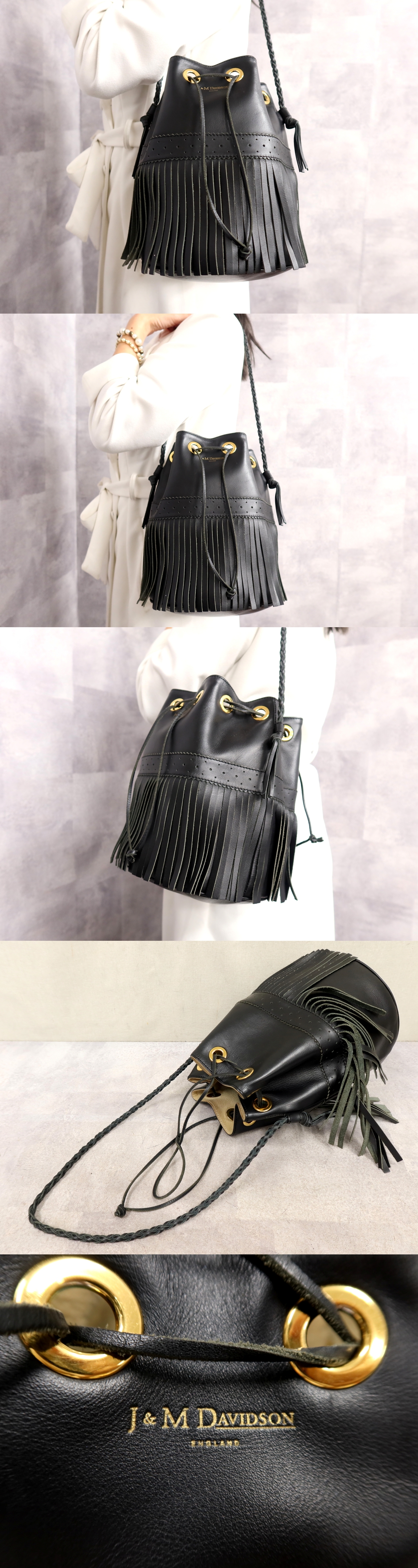 ●超美品●J&M DAVIDSON デヴィッドソン●カーニバル●フリンジ●カーフ レザー 本革●巾着 ショルダー バッグ●黒●ゴールド金具●Js63041 收藏