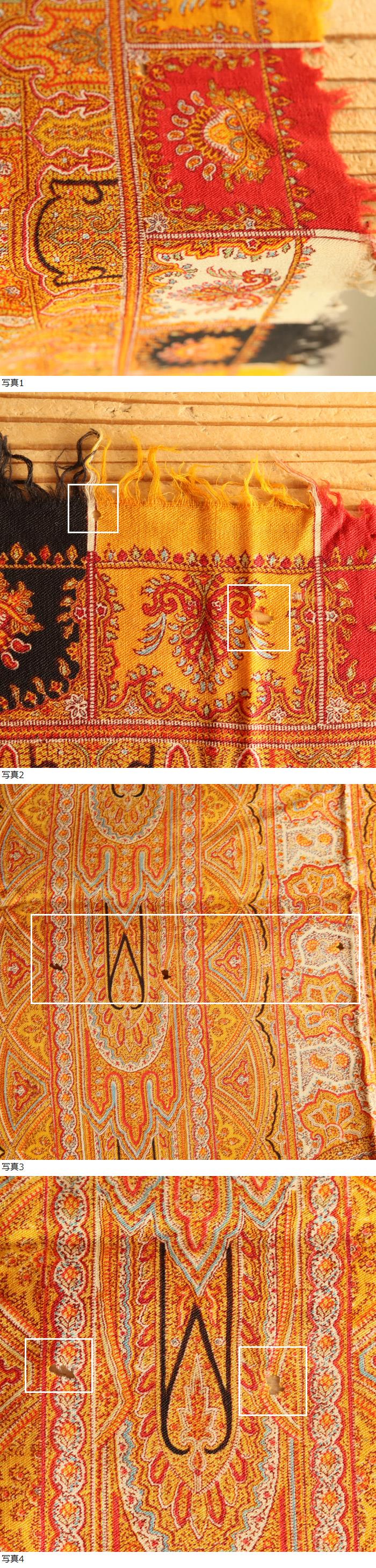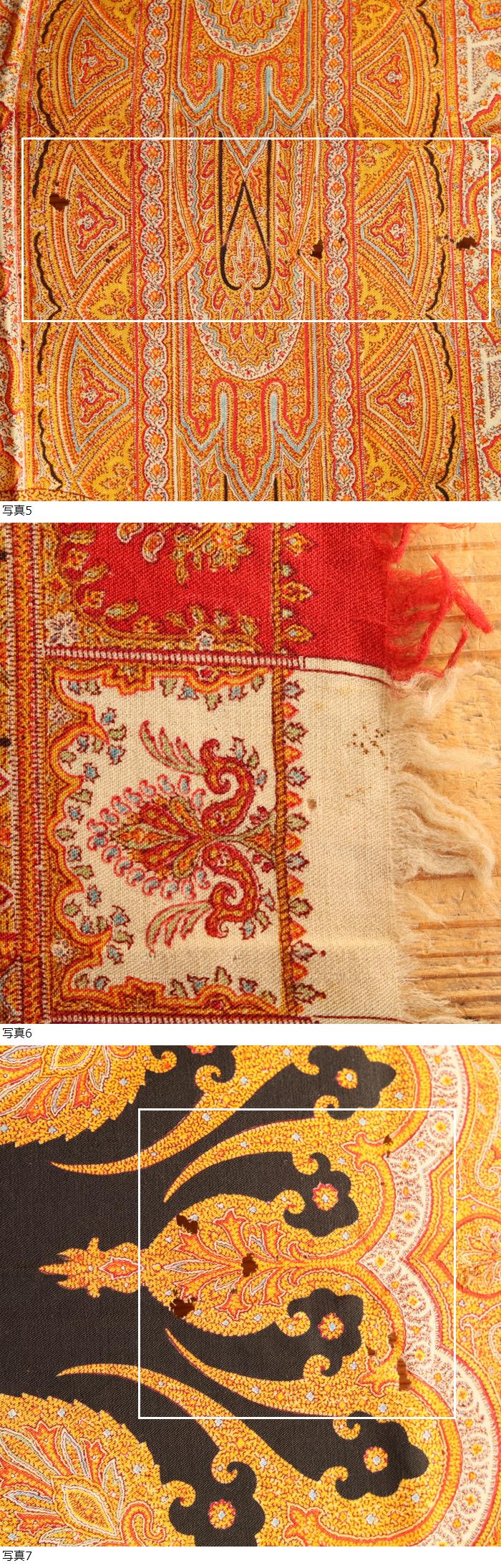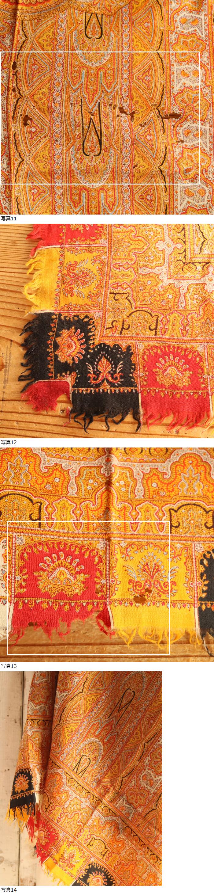 【47】希少!フランス アンティーク 19世紀 ペイズリー ショール 170cm 大判 正方形 19世紀 プリント ウール シルク リメイク 素材 收藏