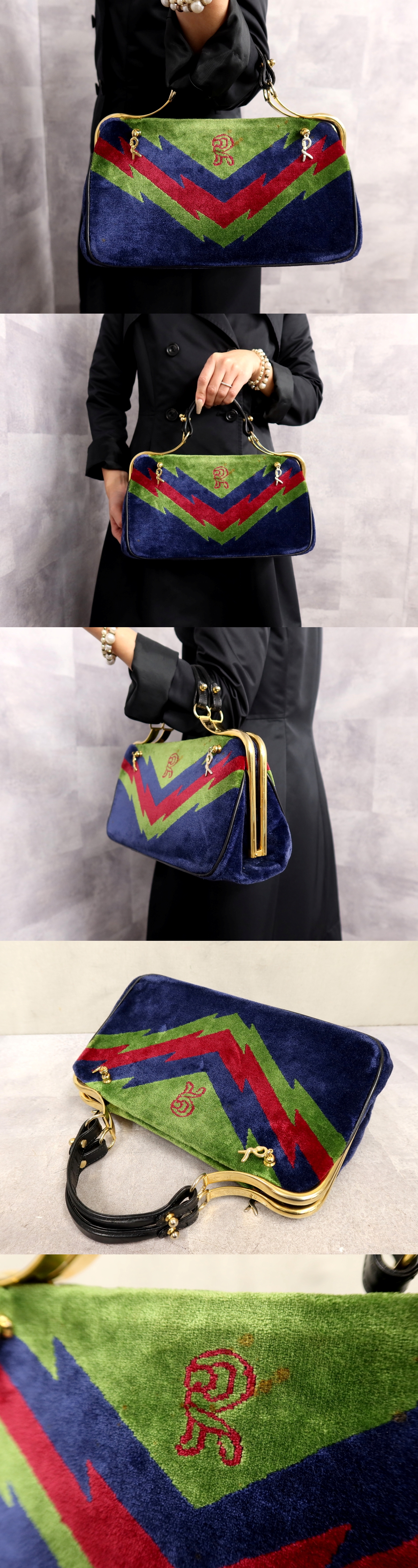 ●美品●ロベルタ ディ カメリーノ●カラベラ●ベロア カーフ レザー 本革●がま口 ハンド バッグ●マルチカラー●G金具●腕掛け●Js63575 收藏