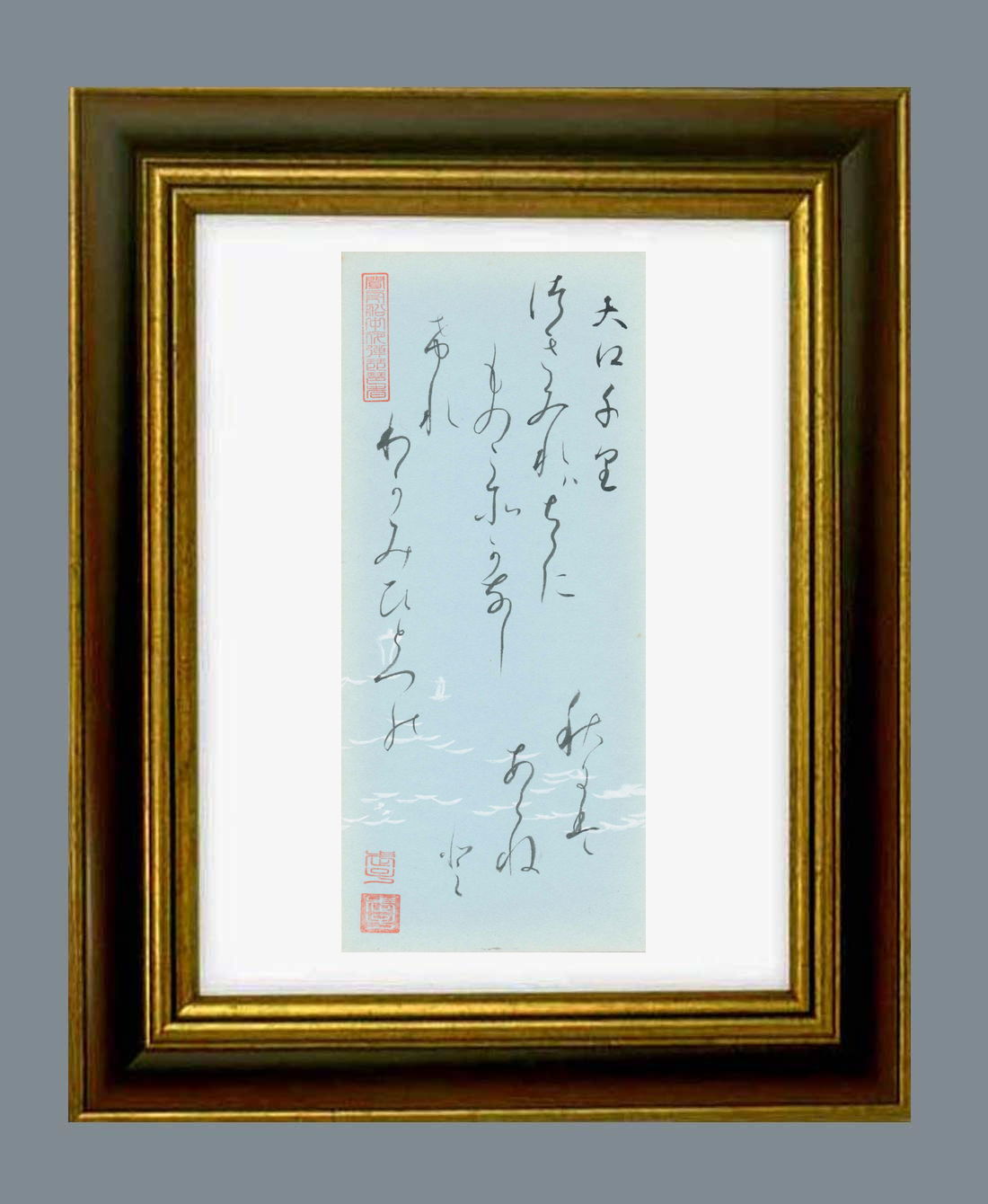 「百人一首」原本の大きさ タテ27.0センチ ヨコ11.8センチ。額縁の大きさは、タテ40.0センチ ヨコ30.0センチ。額縁は新品です。 |