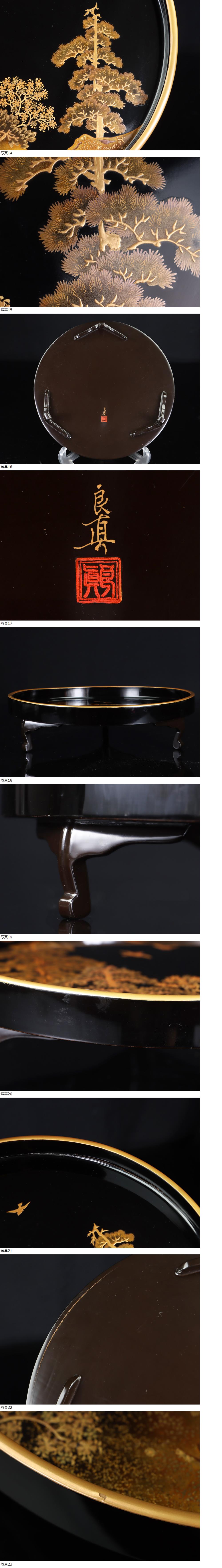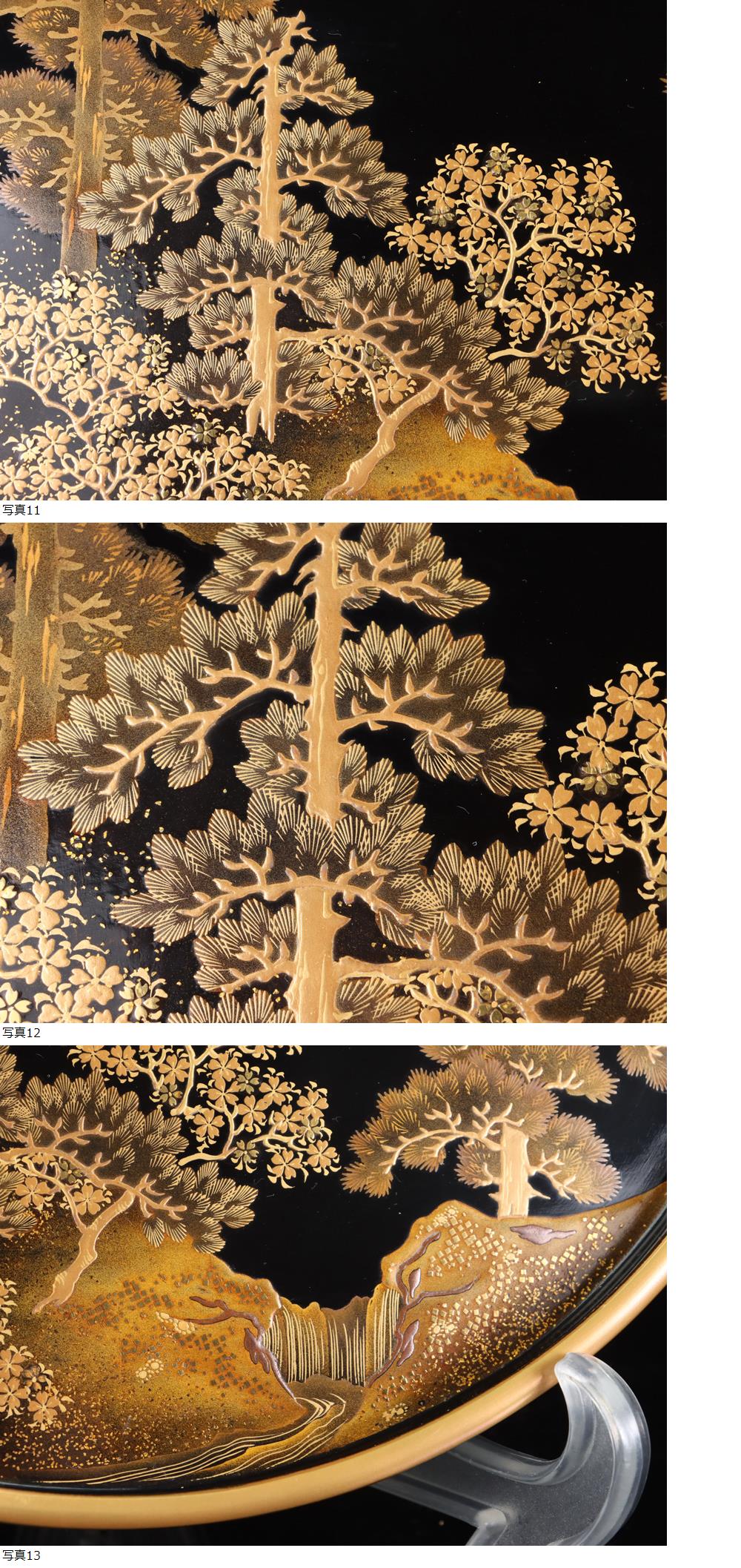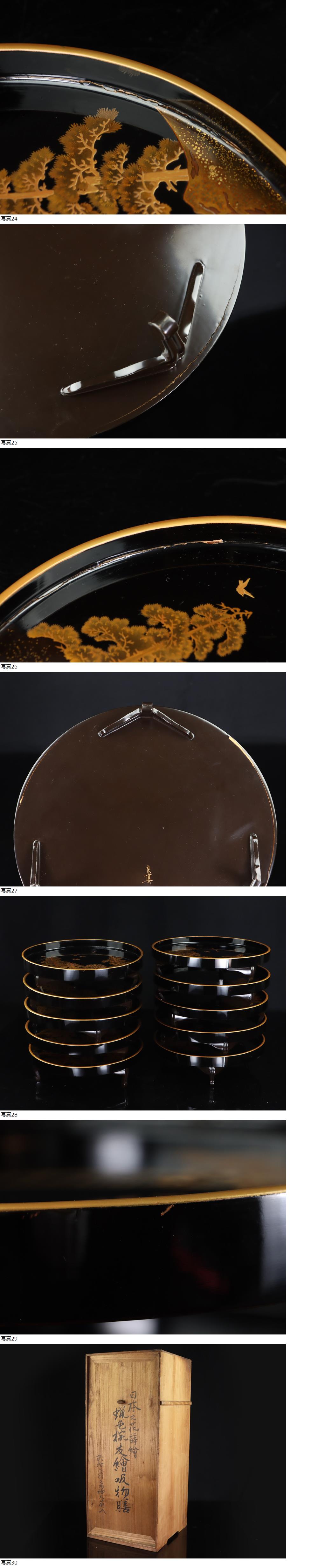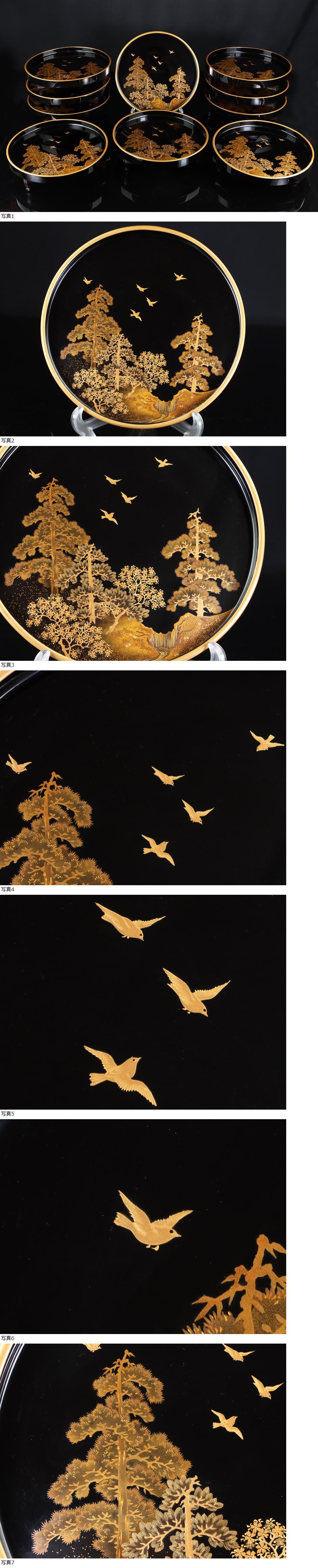 魁◆名家旧蔵 美術品保管室出品 幕末明治期 蒔絵師 良真作 共箱 超絶技巧蒔絵 松鳥図 御前吸物盆 十客 本金銀梨地最上質漆 大名道具蒔絵 收藏