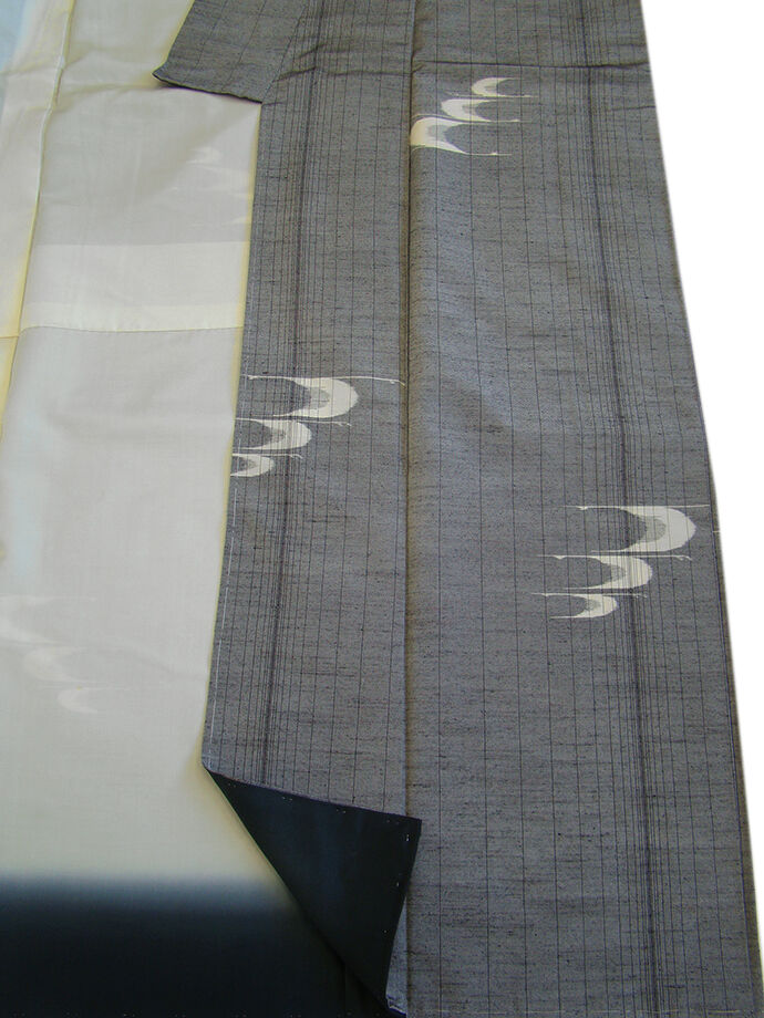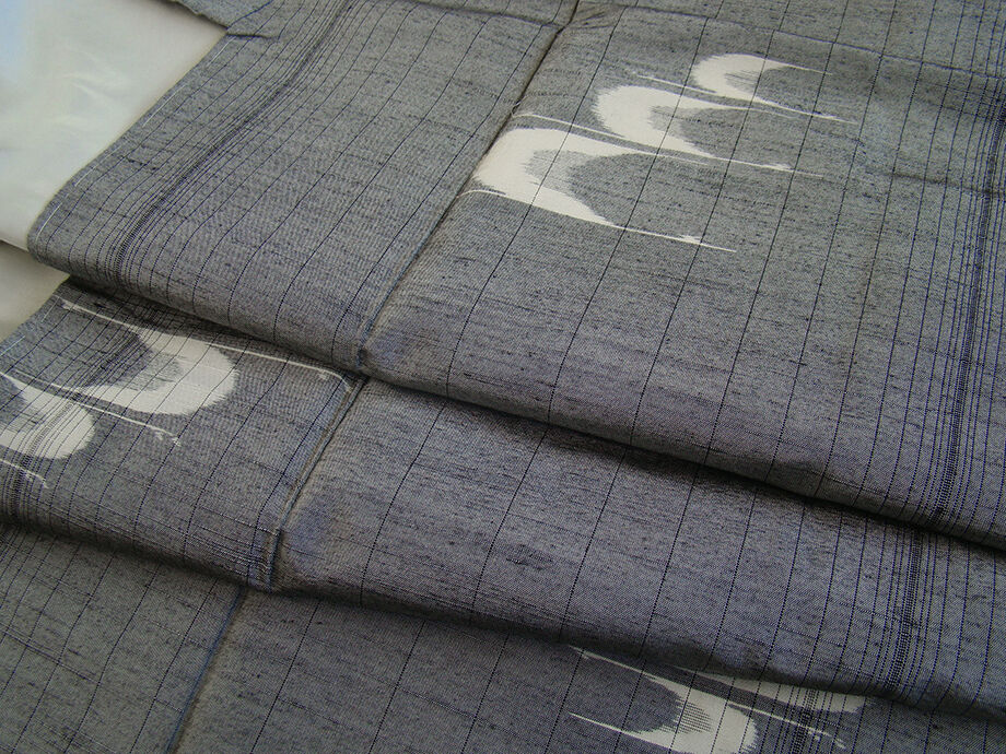 | 商品説明 | こちらのお品は「袷」ですので、10月から5月までお召し頂ければと思います。 十日町紬は着易く動きも軽く、着くずれしない腰の強さを併せ持った お洒落着としていつでもどこへでもお気軽にお愉しみ頂けご愛用頂けるお品です。 グレー色地に黒色の縞に象牙色の飛び柄の織柄、 八掛は墨色(正絹)、幅広い年代の方にお召頂けます。 |